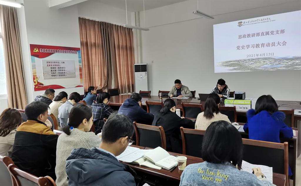龙海平指出,开展党史学习教育,是党中央站在“两个一百年”奋斗目标历史交汇的关键节点作出的重大决策,一部党史就是一本本鲜活的思政课教科书,思政课要始终与党的历史一脉相承,紧密相连。龙海平要求,每一门思政课都要制定具体的实施方案,各思政课教师要积极参加与庆祝建党百年主题相关的学术活动,我部也将组建学院宣讲团深入各二级党组织宣讲,通过扎实开展相关活动,不断推动党史学习教育走深走实,同时高质量推进思政课立德树人任务的完成。