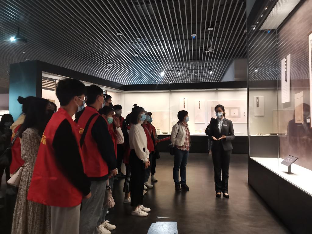 博物馆讲解员以时间为轴线,结合博物馆中的珍贵藏品为我们展示千年桂林的历史发展进程:从有标志性考古意义的史前时期,到人文荟萃的明清及近现代时期,更重要还有桂林抗战文化史以及湘江战役的红色传奇。讲解员侧重合宜,深入简出,层层推进,给师生们展现了桂林作为山水历史文化名城以及抗战文化城的多个历史侧面,都是“四史”教育生动翔实的历史素材。此次红色研学,是一节生动的历史文化课,促进师生们更好地“学史明理、学史增信、学史崇德、学史力行”。