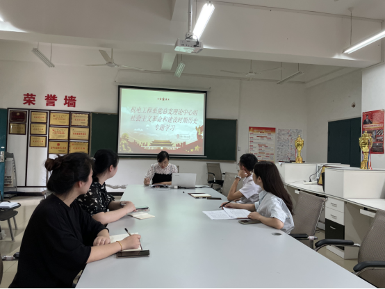 5月28日,机电工程系党总支理论中心组开展社会主义革命和建设时期历史专题学习,中心组全体成员参加学习,中心组成员张燕同志领学。