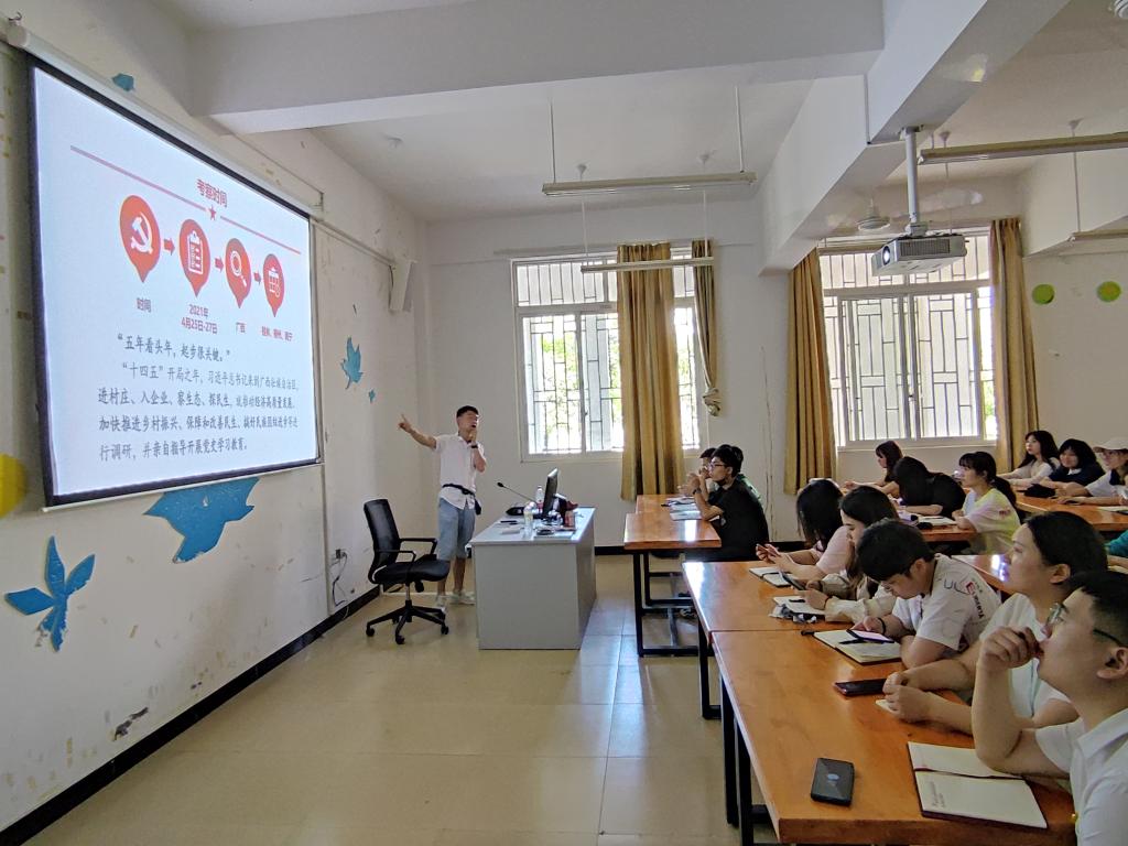 为深入开展党史学习教育,设计系于5月28日在41105教室开展了党史学习教育专题党课,此次专题党课邀请了思政部王硕老师讲授,党课主题为“新时代广西发展的根本遵循——深入学习领会习近平总书记对广西工作的重要指示精神”,设计系党总支师生党员参加党课学习。