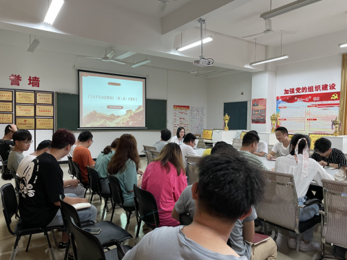为进一步学习习近平新时代中国特色社会主义思想,6月8日,机电工程系第一、第二学生党支部全体党员开展《习近平谈治国理政》第三卷专题学习,会议由支部书记严继玲、梁梦良老师主持。