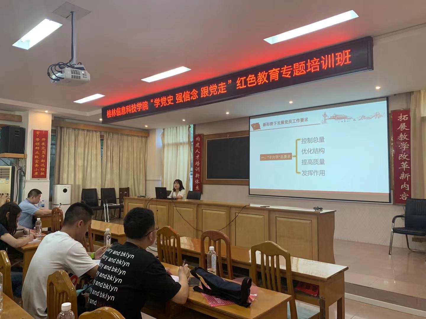 专题培训上,学校副校长、党委副书记、纪委书记唐步洲为全体学员讲授了“学党史、感党恩,坚守和践行思想政治辅导员的初心和使命”主题党课,灌阳县红色文化培训中心主任胡海源开展题为“学党史、明初心、知使命——中国共产党逐梦之路与经验启示”专题培训,学校党群事务部副部长张文源和大学生心理健康中心主任张承宗分别就如何做好学校意识形态工作和大学生心理危机工作展开培训,党群事务部莫德莉就如何开展“入党的规定和发展党员工作流程”进行专题培训。