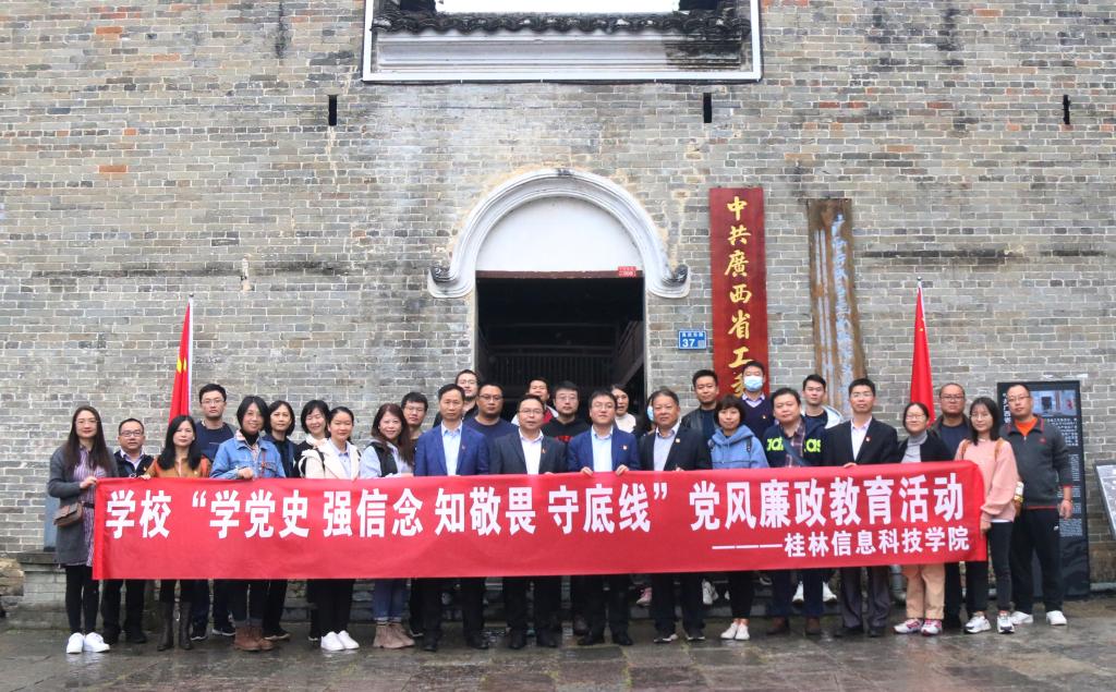 为推动党史学习教育走深走实,切实加强sjb世俱杯党风廉政建设,提高党员领导干部政治素养,增强教职工廉洁自律意识,10月30日,学校党委组织前往广西省工委旧址廉政教育基地、广西省工委历史博物馆开展“学党史 强信念 知敬畏 守底线”党风廉政教育活动。学校校领导、纪委委员以、全体中层管理人员和各党总支、直属党支部书记参加学习。