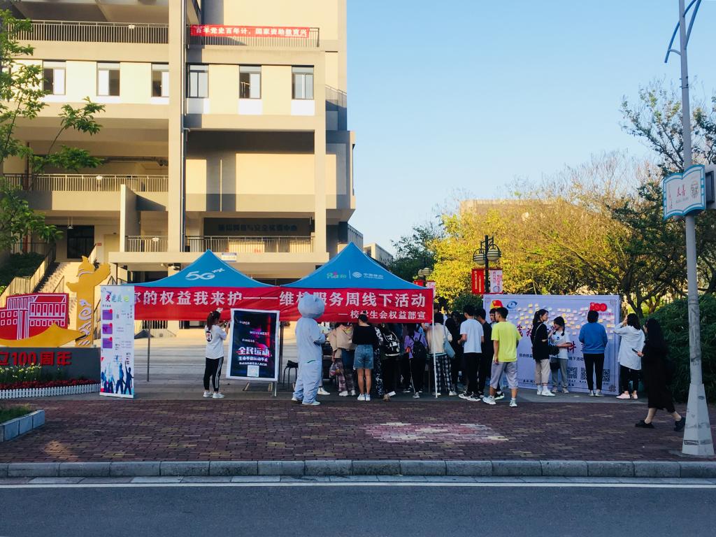 在4月29日当天,院学生会权益部在五教前广场开展了“你的权益为来护——维权服务线下活动”,活动设置了摊位,开展党史知识问答、权益游戏、收集权益问题等互动环节,同学们通过扫描“权益随心墙”上的二维码,在线上平台创达自己的所思所想,并现场留言积极发表对学院建设各方面的意见及建议。这次活动内容丰富有趣,引来了大量同学的围观和参与,现场氛围热烈。