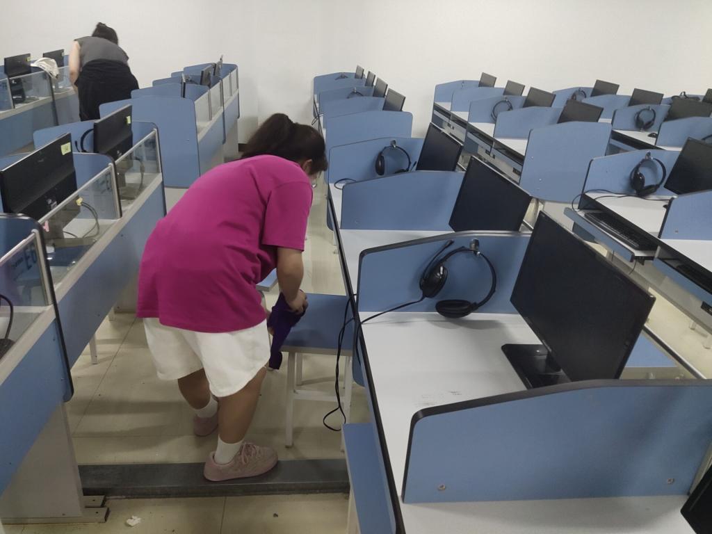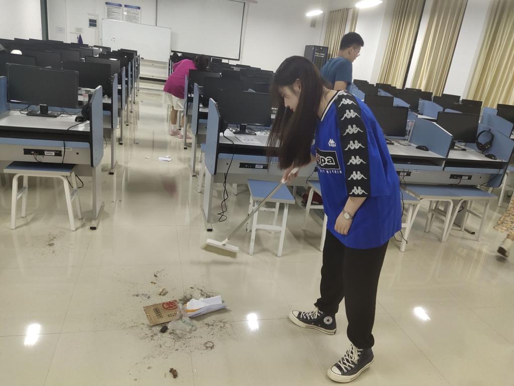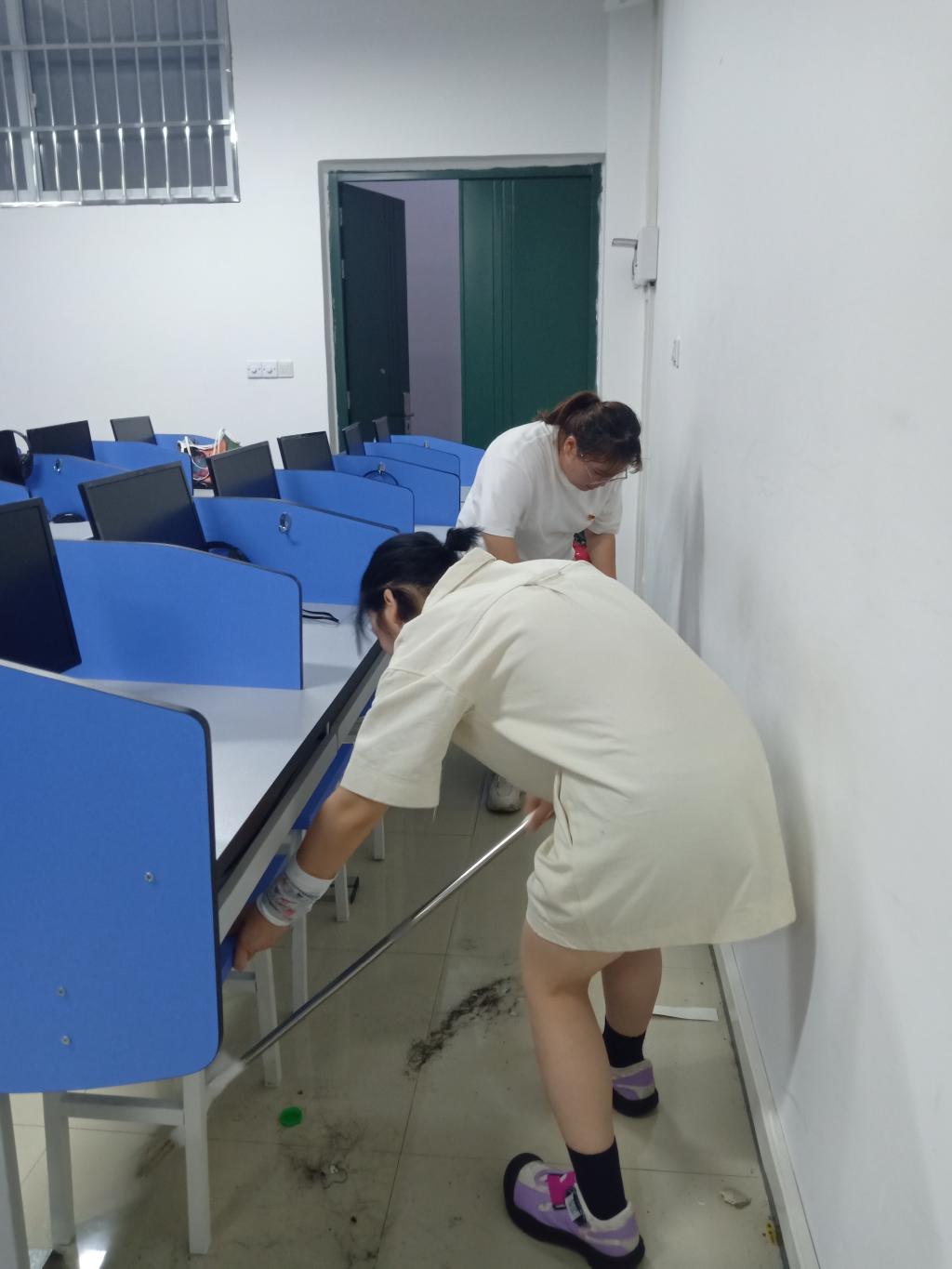 活动开始,受助学子按照实验室数量划分小组,各小组成员对我系实验室进行责任区划分。在服务过程中,受助学生党员带领受助团员投入清扫服务中去,党团合力,团结协作、干劲十足,不怕脏,不怕累,将我系30间实验室进行了彻底清扫。
