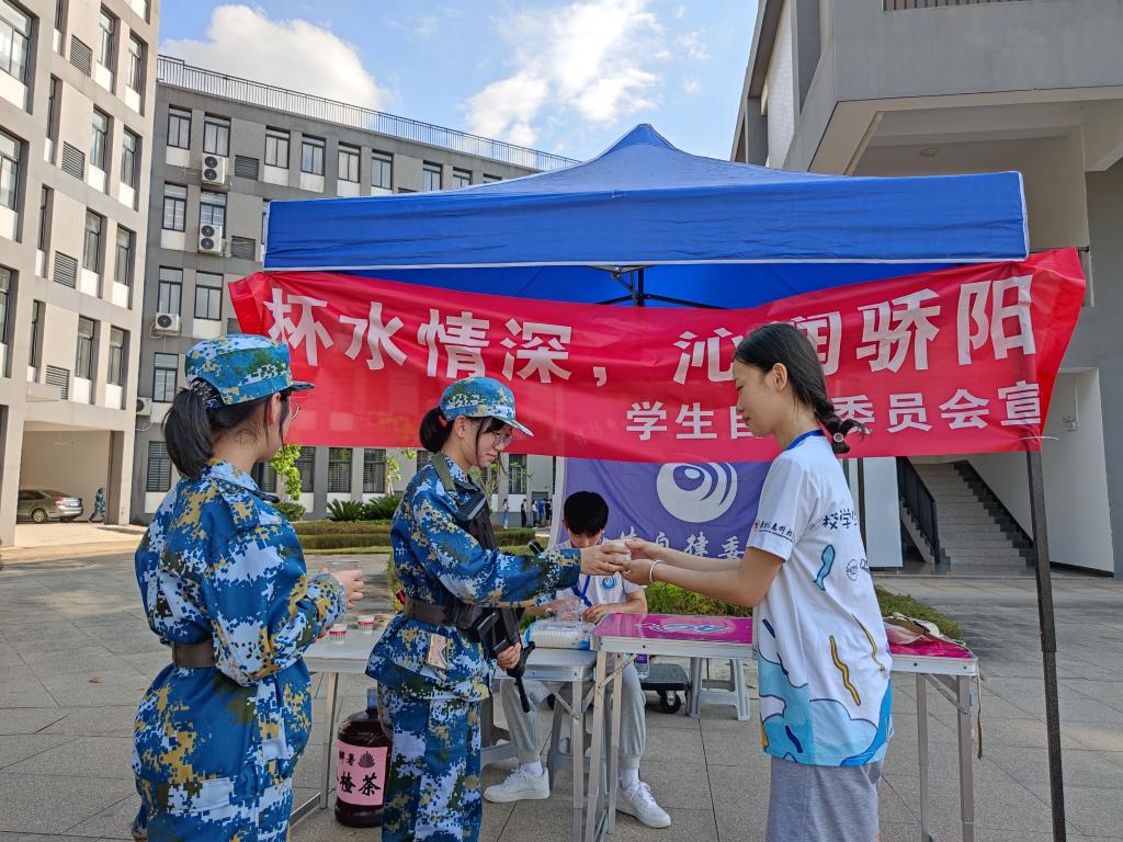 九月的桂林,依然骄阳似火,酷暑难耐。为了帮助新生在军训期间防暑降温,加强与新生的沟通与联系,9月16日-17日下午,信科物业公寓服务中心携手校自律委员会在开展“军训送清凉,茶饮暖人心”志愿服务活动,向正在烈日下军训的大一新生、教官送去解暑茶。