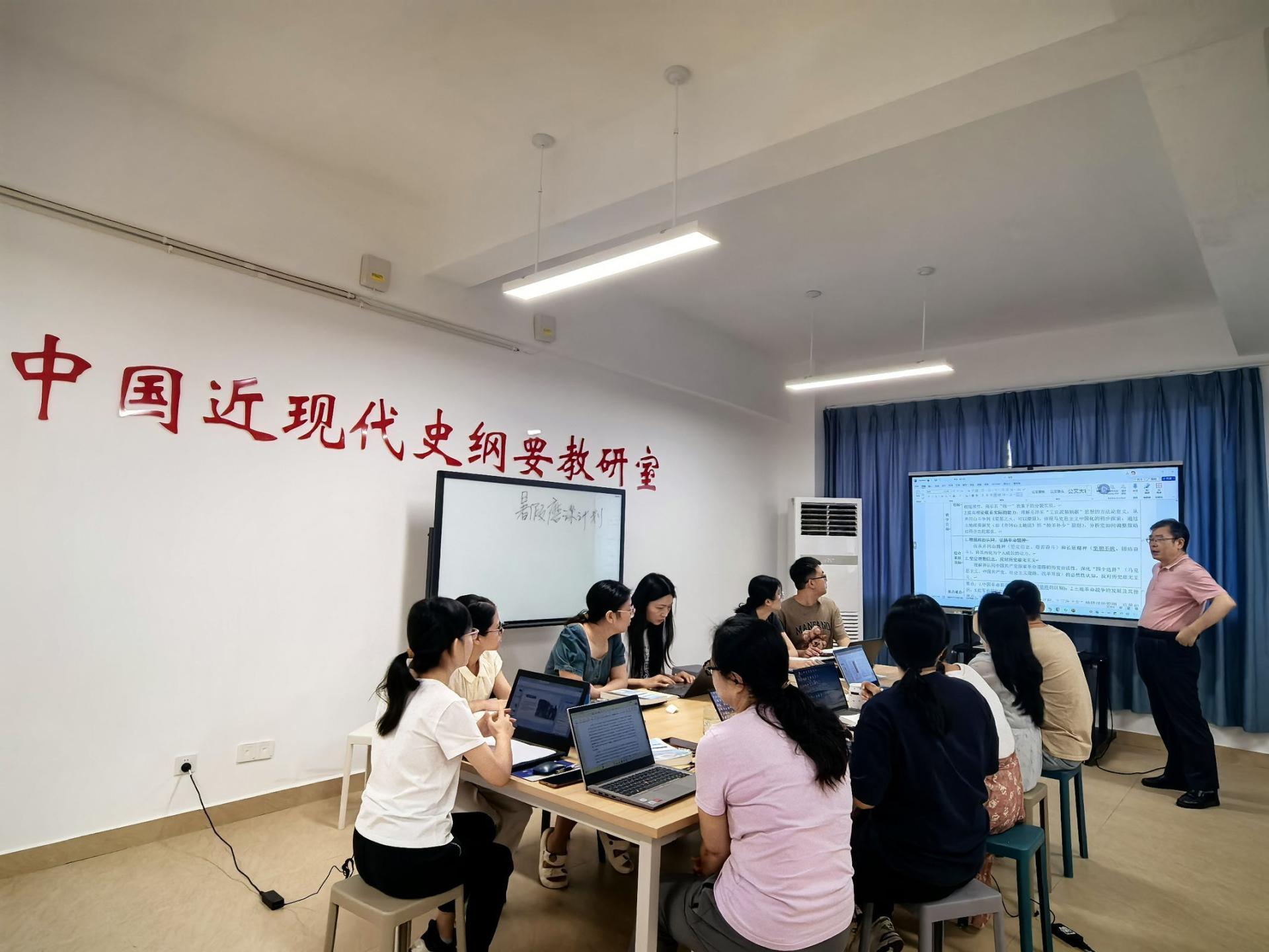为促进学院教师快速成长,提升教师专业素养,积极迎接2025年本科教学合格评估,马克思主义学院中国近现代史纲要教研室于7月14日和16日,先后在G615 办公室开展了集体备课会与集体磨课活动。两次活动均由教研室主任王硕主持,教研室全体教师参与。