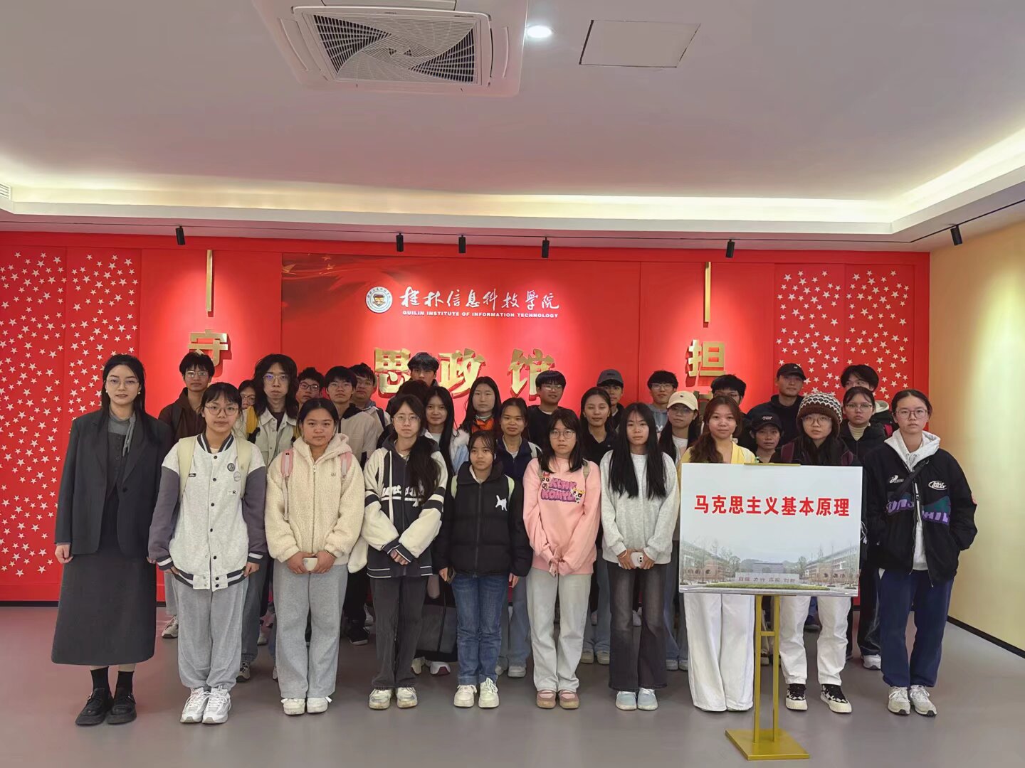 活动中,教师们紧扣《马克思主义基本原理》课程教学要点,充分挖掘思政馆“百年党史”“中国精神”“红色广西”“科技强国”等板块的育人资源,将其转化为鲜活的教学素材。在“百年党史”板块,借助丰富的史料,生动阐释“人民是历史的创造者”这一唯物史观核心原理;在“中国精神”板块,则通过梳理共产党人的精神谱系,帮助学生理解先进社会意识对社会发展的能动作用;在“红色广西”板块,教师们结合八桂大地的革命与建设历程,使理想信念教育更加具象化;而在“科技强国”板块内,通过展示国家重大科技成就,有力论证了“科学技术是第一生产力”的时代内涵。同学们全程积极参与,在沉浸式体验中深化理论认知,通过现场提问、互动交流等方式,展现出浓厚的学习热情和理论思考深度。