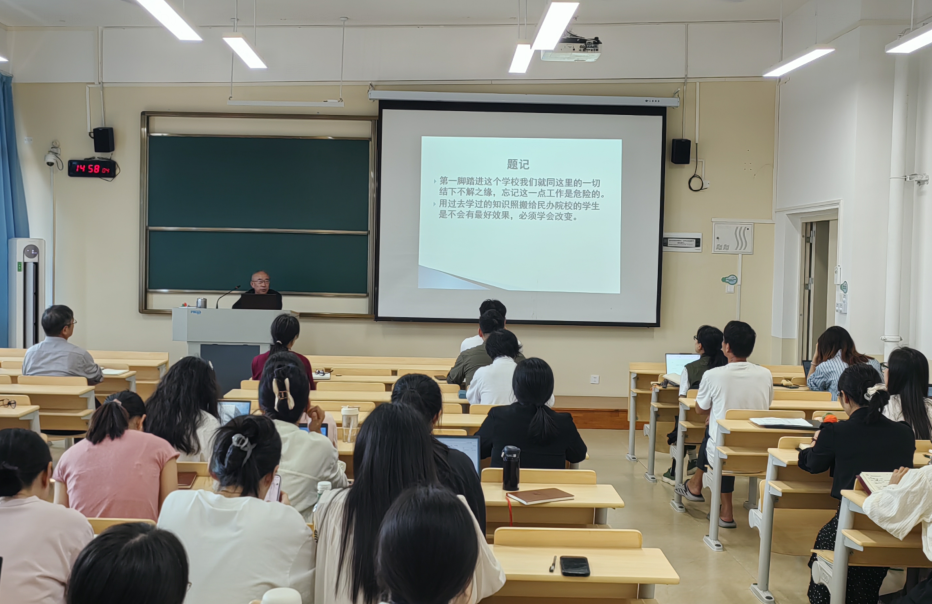 赵教授以“从民办院校学生实际出发·探索入行入门入道的理念与方法”为主题,深入阐释何为“入行”以及“入行”的意义;在引述笛卡尔、老子的相关论述基础上,循序渐进地从何为“入门” 以及 “入门悟道” 两个方面,为全体教师展现了 “大道无形” 的广阔解读空间。随后,赵教授紧密结合sjb世俱杯办学理念,重点向大家讲解了思政教师的入门 “五道”,即守道、知道、学道、教道、科研道。最后,本次讲座在精彩的实际教学案例分享和科研课题指导中圆满落下帷幕。