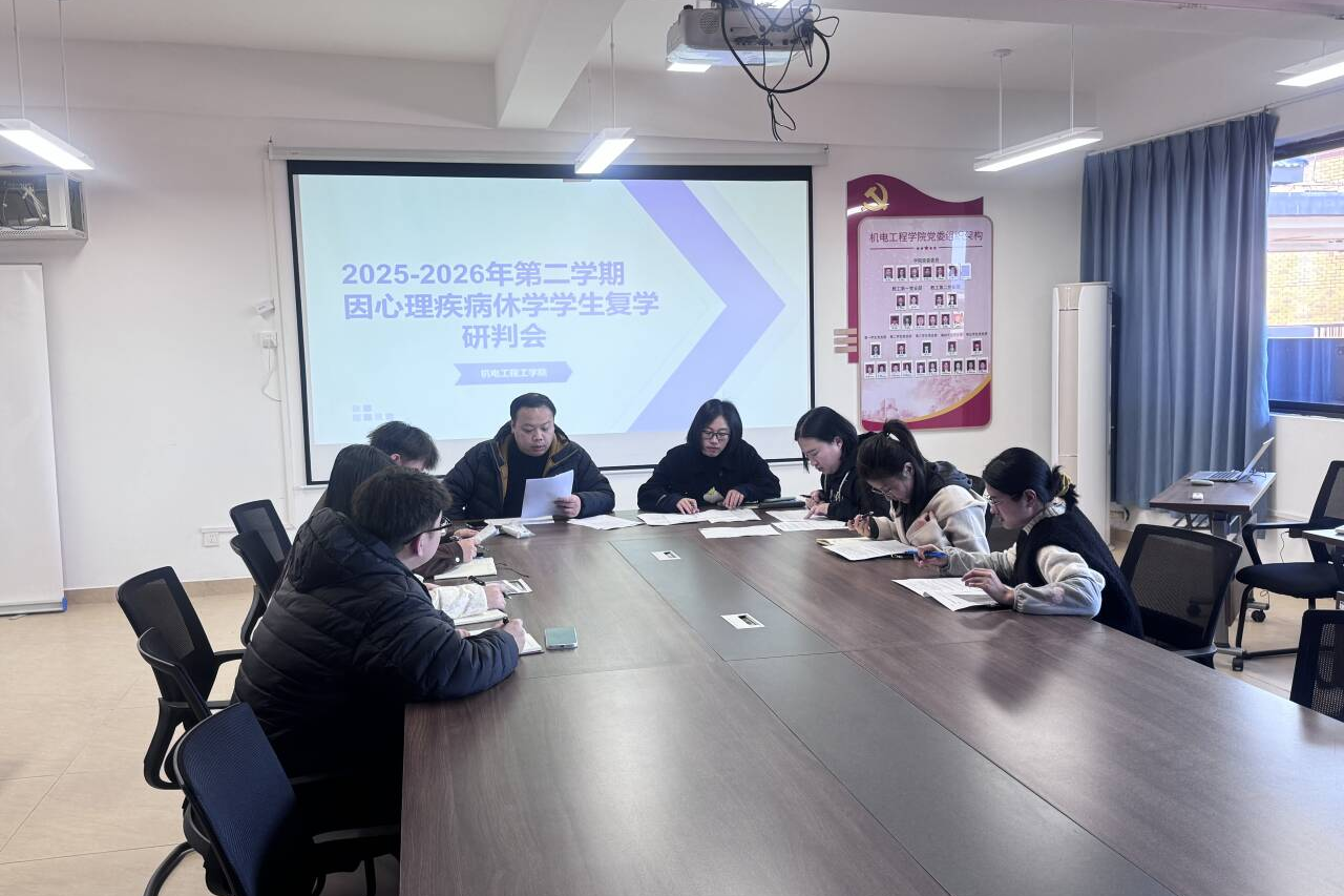 为进一步规范休学学生复学工作流程,扎实做好因心理、精神疾病休学学生的复学评估与后续帮扶工作。3月5日,机电工程学院在学院会议室召开2025-2026学年第二学期休学学生复学联席研判会。学院党委书记、党委副书记、心理辅导员及相关年级辅导员出席本次会议。会上,各相关年级辅导员逐一汇报申请复学学生的基本情况,详细介绍了学生休学期间的就医诊疗记录、阶段性康复进展及复学意愿。学院领导班子与心理辅导员结合学生提交的...
