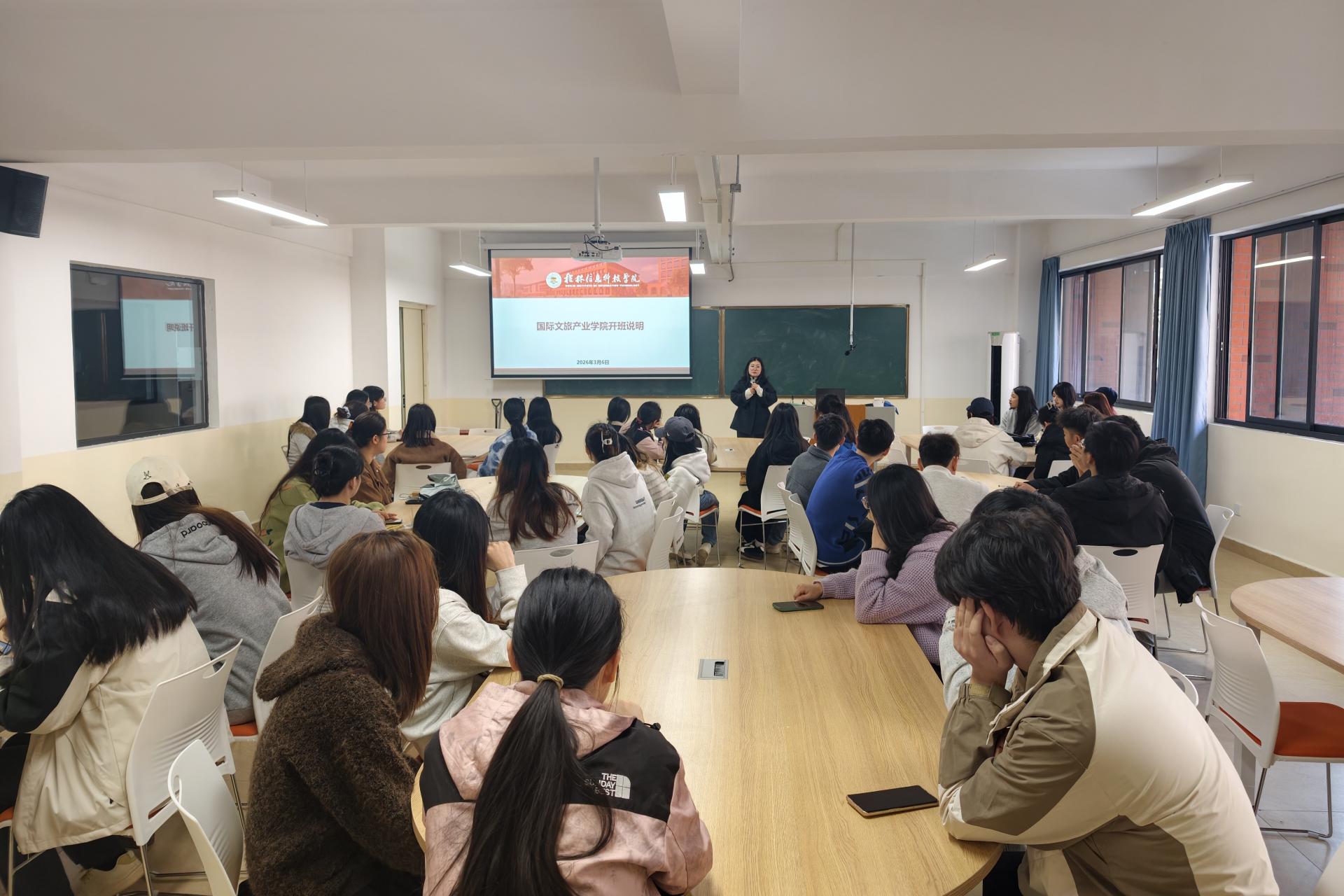 3月6日,为帮助国际文旅产业学院学生全面了解本学期课程要求、文旅行业现状、现有企业资源等,酒店管理教研室主任兼国际文旅产业学院项目负责人黄艳老师向2023级参与产业学院学习的全体学生召开项目第一次沟通会。沟通会现场会议上,黄艳老师围绕学生关注的产业学院课程考核要求、行业人才需求现状、岗位类型等展开详细讲解。随后,重点介绍学院现有及拟挖掘的企业合作资源,包括国内外知名酒店品牌、涉外大型旅行社、高档民宿...