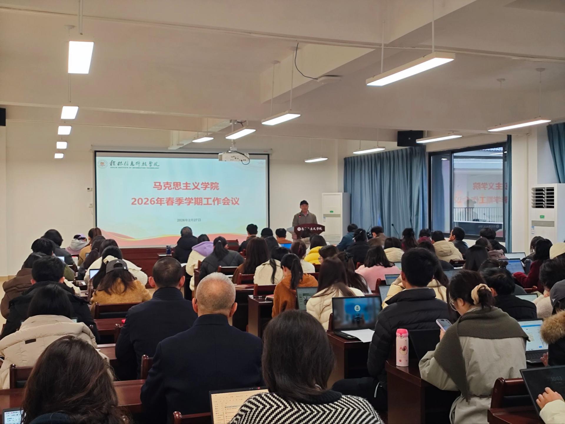 为系统谋划新学期重点任务,进一步统一思想、凝聚共识,确保新学期各项工作有序高效开展,马克思主义学院于2月27日上午在G605会议室召开2026年春季工作会议。会议由院长邱启照主持,全体教师参加。会议现场邱启照院长首先系统总结了2025年工作,充分肯定了教育教学、科研创新及评估成果巩固等方面成效。他强调新学期要围绕“改革创新、提高质量”主线,重点推进三项工作:一是推进人工智能与思政课教学融合;二是深化教学改革...