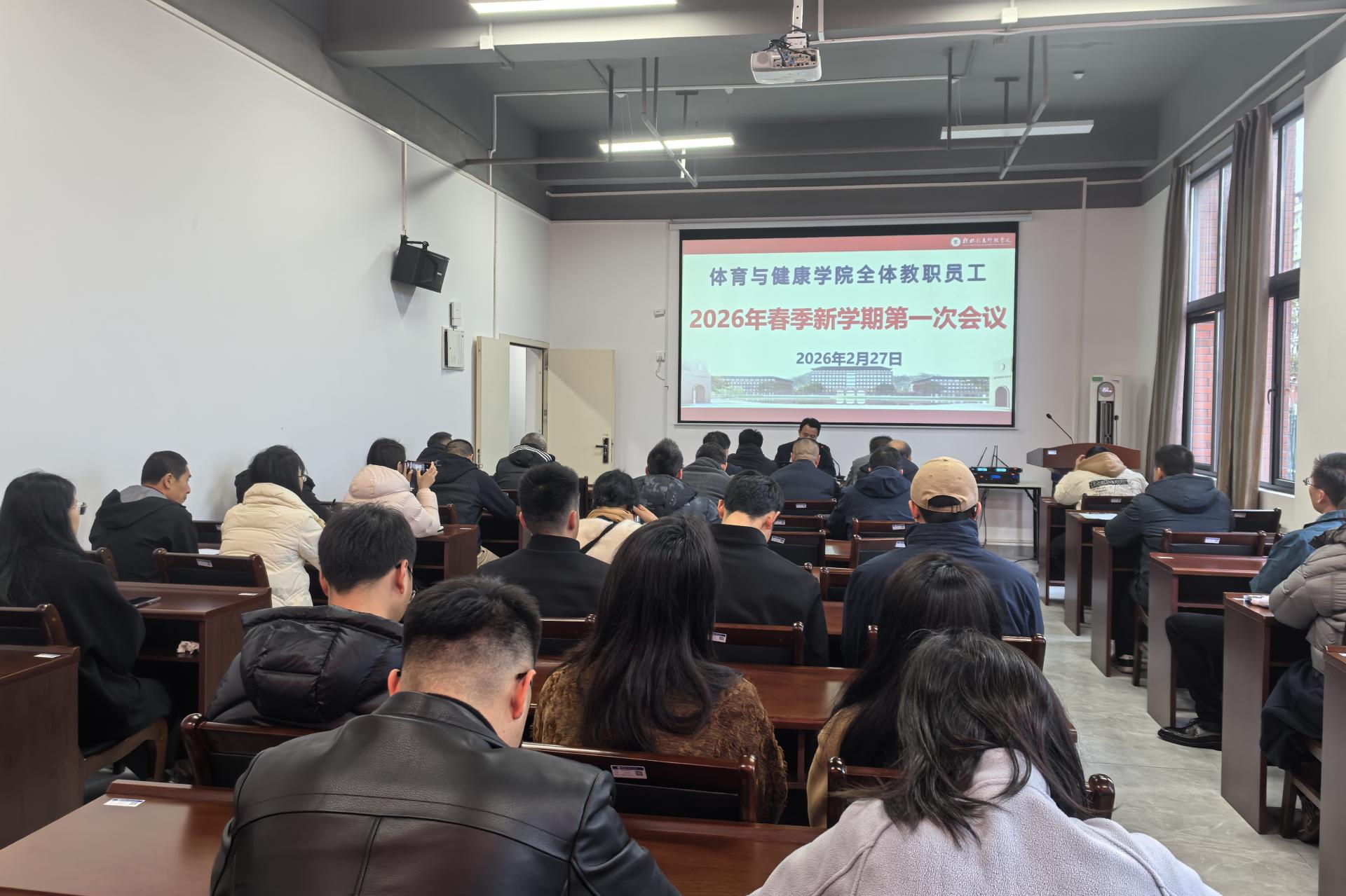 2月27日上午,学院2026年春季新学期第一次工作会议在行健楼108会议室召开。会议全面总结上学期相关工作,统筹部署新学期教学、管理、学生工作等各项任务,为新学期工作开展明确方向、提出要求。会上,院长周勇首先通报了上学期期末教学检查情况,肯定了教学工作成绩,强调本学期要持续抓实教学管理,确保各项教学工作落实到位。同时,明确了2026年学院三大重点工作方向——探索人工智能在体育教学中的应用、深化产教融合协同...