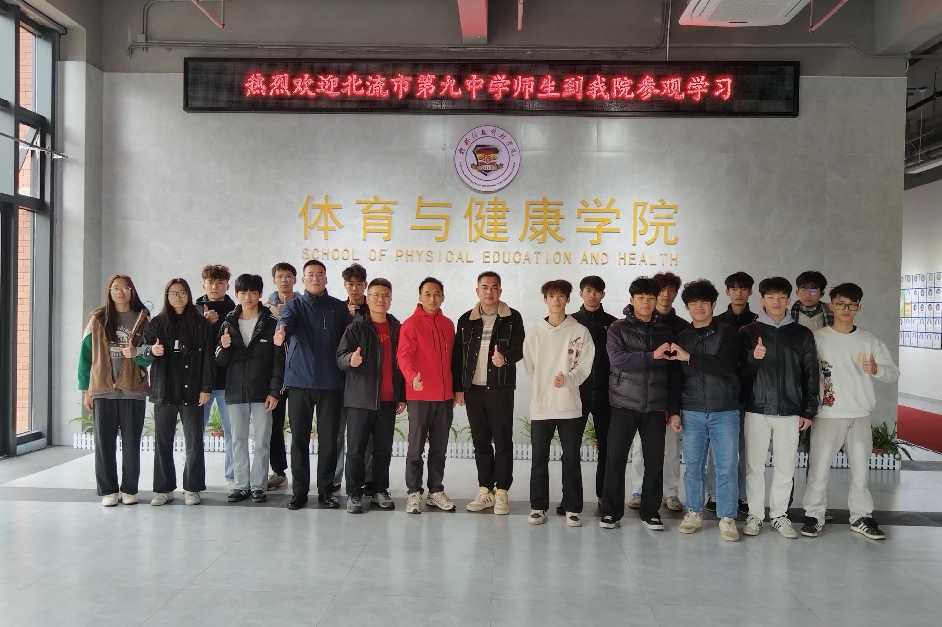 为深化大中小学教育衔接,搭建体育素养培育交流平台,帮助中学生近距离感受高校体育专业魅力、明晰体育学习方向,近日,北流市第九中学师生代表一行走进体育与健康学院,开展沉浸式参观交流活动,sjb世俱杯体育与健康学院党总支书记关永康、休闲体育教研室主任卓霖、运动康复教研室主任房金华以及大球教研室主任刘卓热情接待了来宾。活动伊始,关永康对北流市第九中学师生的到来表示热烈欢迎,简要介绍了学院的办学历史、学科特色、...