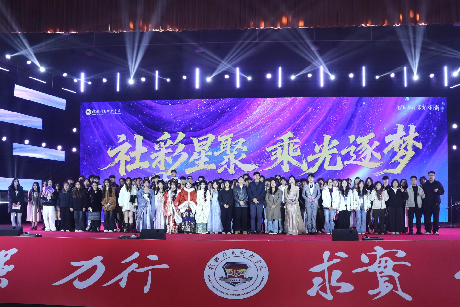 12月21日晚,学校第二届社团嘉年华晚会圆满落幕。本届晚会以“社彩星聚 乘光逐梦”为主题,由校团委主办,汇聚了全校各类学生社团的创意表演,吸引近千名师生共同参与。校团委周阳霖、各学院团委负责同志及其他兄弟院校代表出席了活动。晚会现场晚会节目形式多样,内容丰富多彩,为师生们带来了一场视听盛宴。音乐类社团的深情演绎、舞蹈与武术类社团的刚柔并济、国风与文体类社团的韵味展示,以及情景剧、趣味小品等创新节目,...