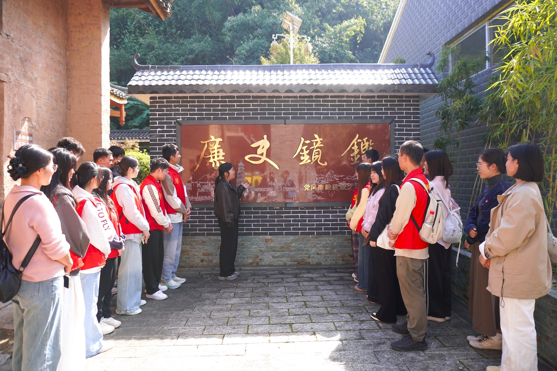 为深入学习贯彻习近平总书记关于党的自我革命的重要思想,巩固落实中央八项规定精神的学习效果,强化师生党员廉洁自律意识,筑牢拒腐防变思想防线,11月14日,信息工程学院党委组织师生党员代表40余人,赴荔浦市杜莫张村革命旧址“廉史镜鉴”廉政教育馆开展“师生共守清廉堤坝,赤帜同擎使命初心”廉洁教育主题党日活动。