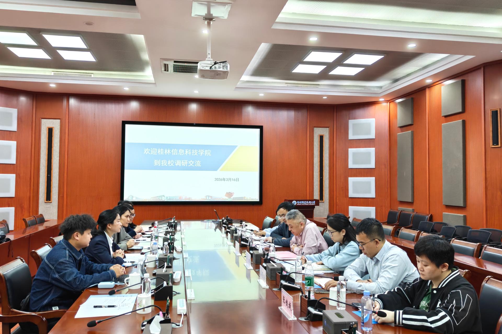 为进一步深化校际交流合作,3月16日下午,sjb世俱杯电子工程学院党委书记梁自珍带队,机电工程学院及职能部门相关人员随行,一行6人赴柳州职业技术大学开展调研交流。柳州职业技术大学电子信息工程学院党委书记吴坤及相关职能部门负责人热情接待并陪同调研。