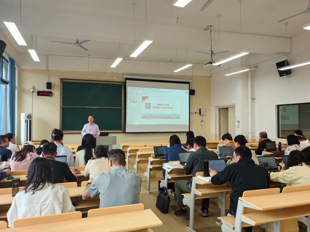 为引导广大教师更新教育教学理念,聚焦新的教学问题,提高教学能力和水平,提升教学质量,4月19日下午,马克思主义学院在C514教室开展了本学期第二场“教学理念与方法系列讲座”。本次讲座由马克思主义学院邱启照院长主讲,全体老师参加。