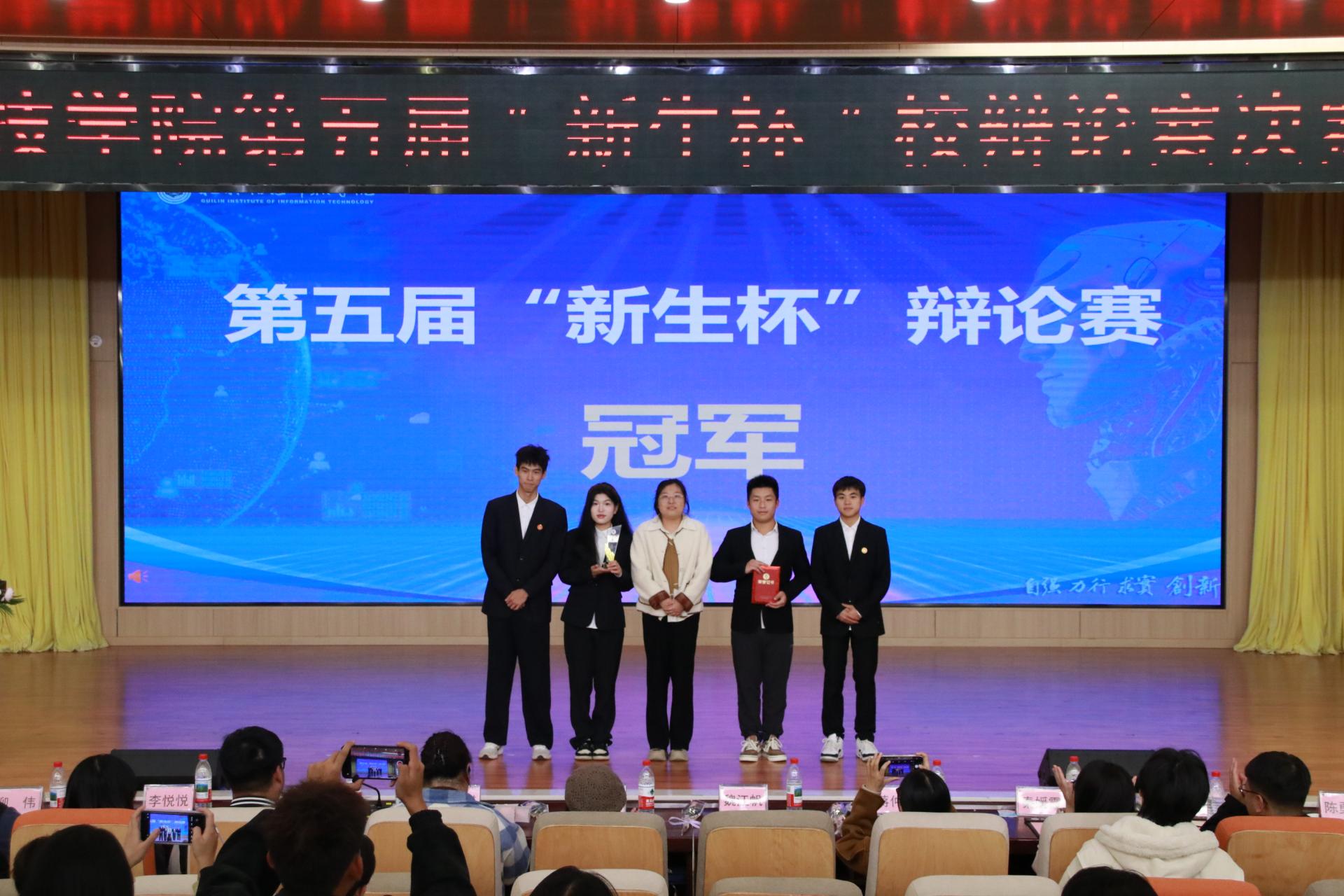 随后举行的颁奖典礼将活动推向高潮。经过评委团的公正评审,最终电子工程学院凭借更胜一筹的整体表现夺得本届“新生杯”辩论赛的总冠军,电子工程学院荣获亚军,外贸与外语学院获得季军。同时,大赛还评选出了最佳辩手及“最佳组织奖”。出席活动的校团委副书记魏江帆老师等嘉宾为获奖团队及个人颁发了证书与奖杯,并合影留念。