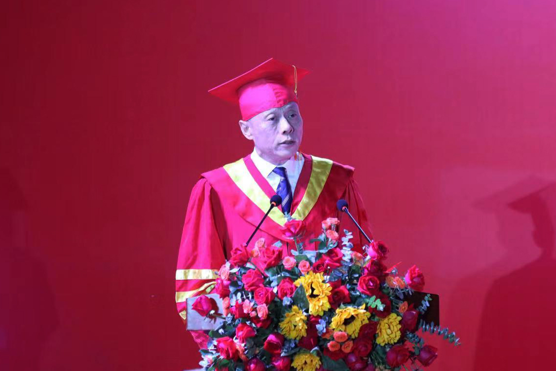 校长梁丁丁致辞,他代表学校向近3500名毕业生顺利完成学业表示热烈祝贺,向悉心培养学生的家长、老师们表示衷心感谢。梁校长表示,四年来,同学们见证了学校的盛世发展,感受到了学校高质量发展带来的新变化;留下了青春记忆,在抗疫中迎难而上、逆向前行;收获了成功喜悦,拥有了出彩的青春、珍贵的友谊,谱写了一段段精彩华丽的乐章。
