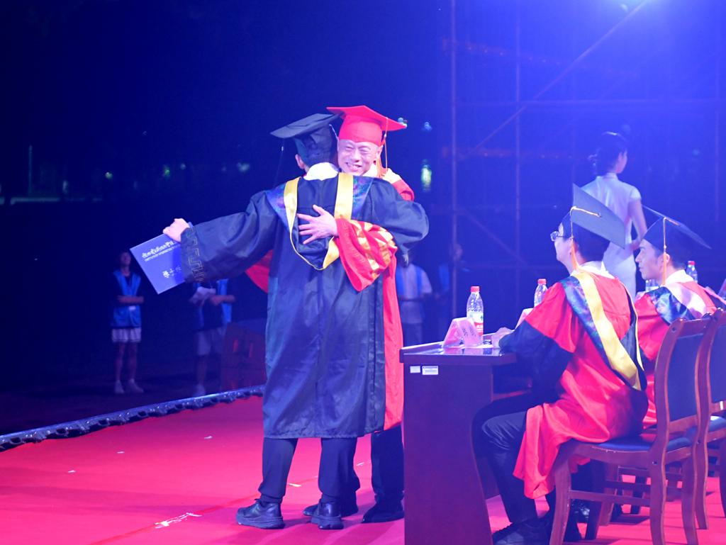 校长梁丁丁与毕业生拥抱、自拍