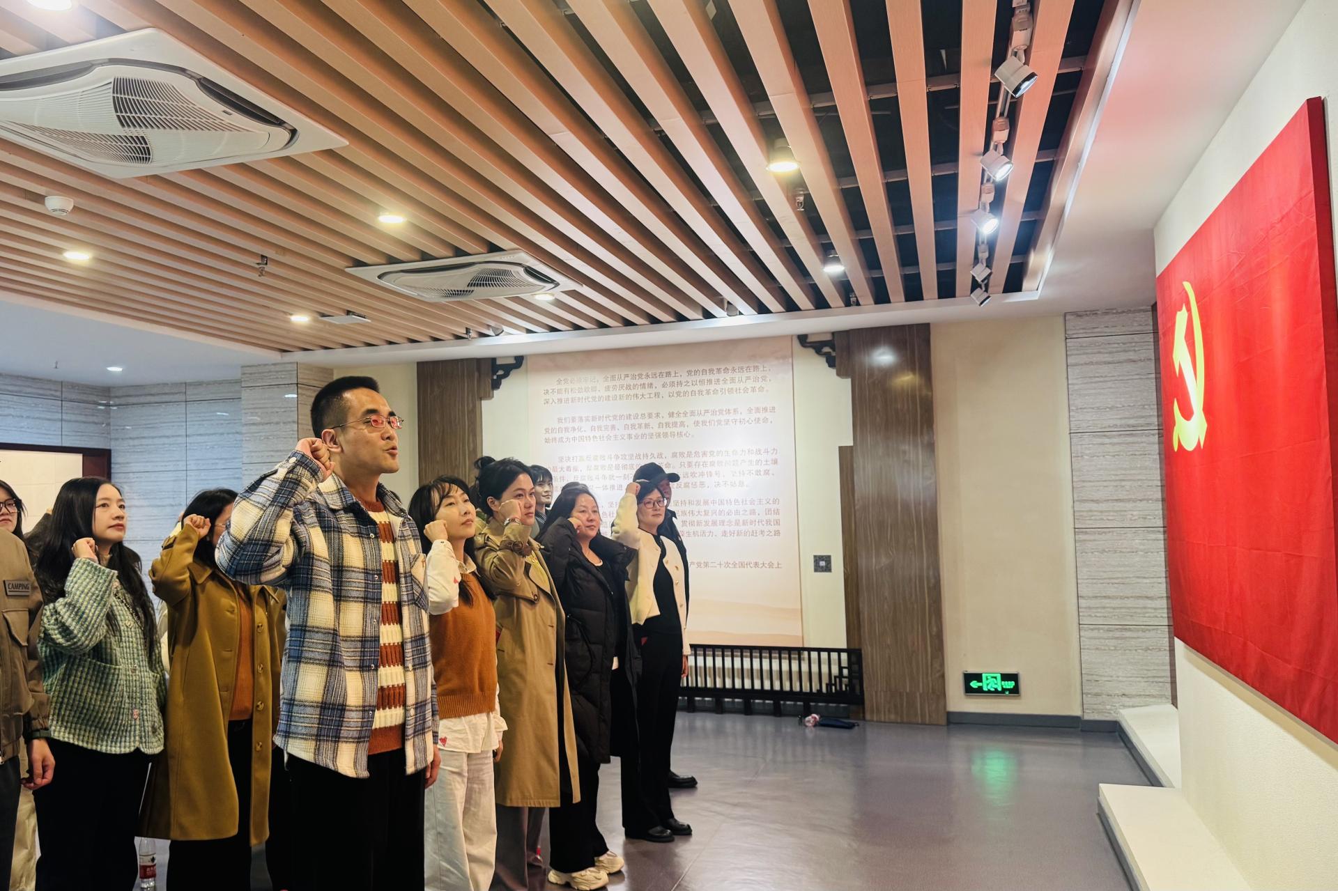 参观尾声,全体党员在鲜红的党旗下整齐列队,庄严举起右拳重温入党誓词。铿锵有力的誓言回荡在展厅之中,既是对初心使命的郑重回望,也是对廉洁自律的庄严承诺。通过本次参观学习,全体教工党员既从先进典型中汲取了奋进力量,又从反面案例中敲响了廉洁警钟,将进一步强化纪律意识和规矩意识,将廉洁教育融入教育教学全过程,以清正廉洁的作风和求真务实的态度,为学校高质量发展筑牢廉洁根基。