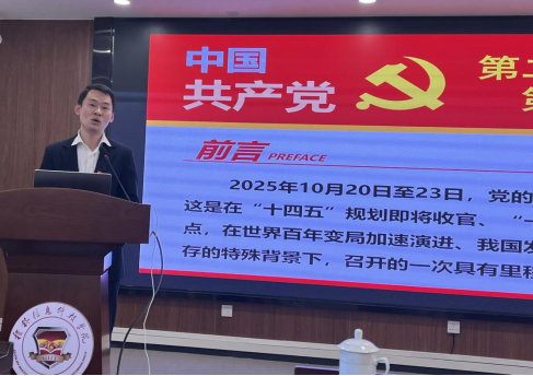 为推动党的二十届四中全会精神在基层落地生根,切实把理论学习成果转化为服务学校发展的工作实效,11月28日,机关第二党支部特邀学校马克思主义学院王硕老师为全体党员开展专题宣讲,会议由支部书记张锟主持。