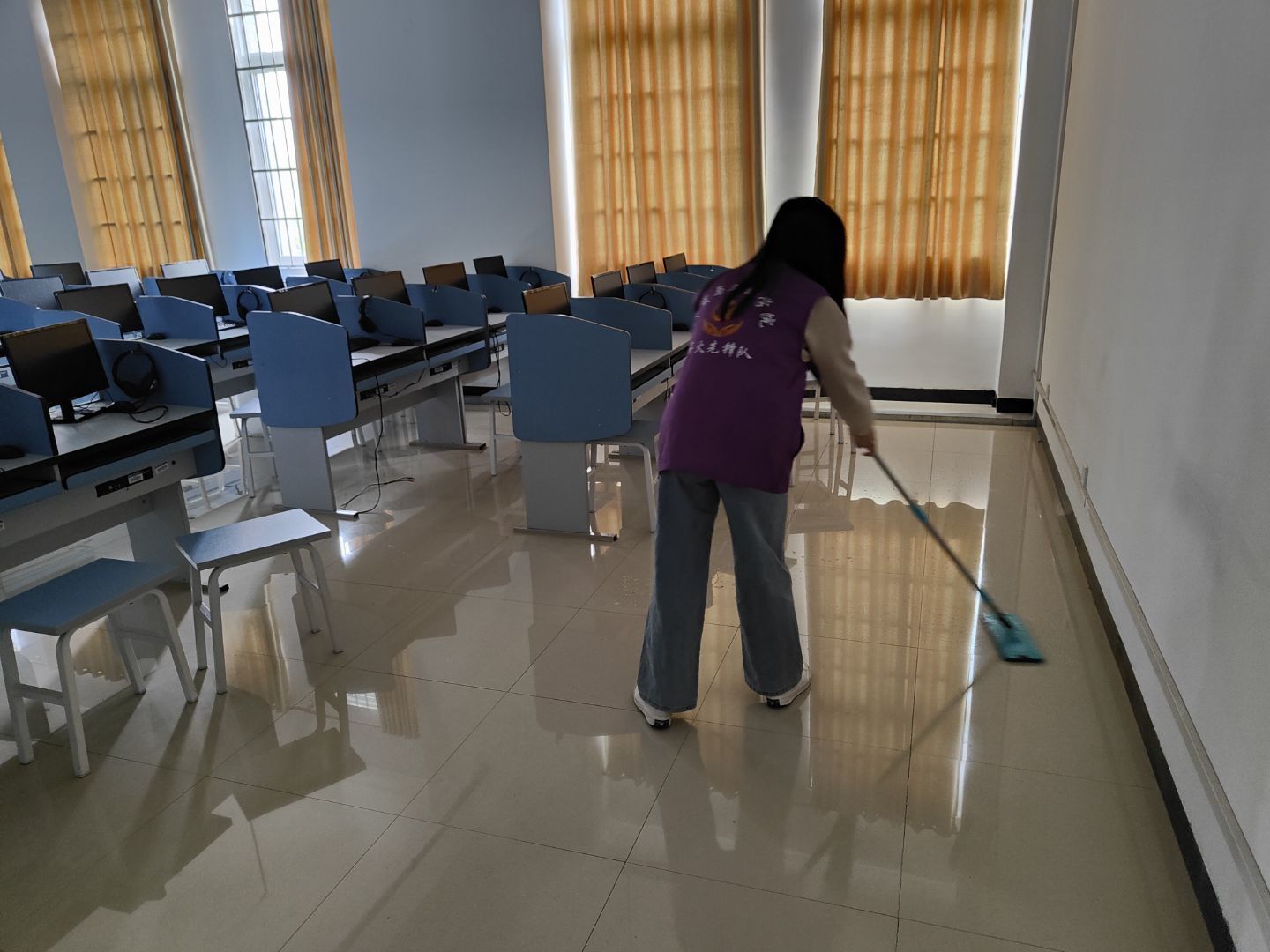 清洁活动开始,实验室管理员何欢老师为志愿者们细心讲解实验室清理的安全注意事项,布置实验室清理任务,并为志愿者们作现场示范。志愿者们按照老师的安排有条不紊地进行着各项工作,互帮互助,充分发扬了不怕苦、不怕累的志愿服务精神。清洁完成后,志愿者们又对实验室设备的摆放、电源开关以及门窗进行了仔细检查。