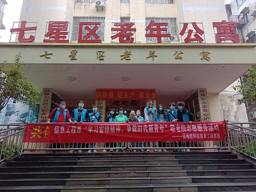 3月27日,信息工程系于桂林市七星区老年公寓开展了“学习雷锋精神,争做时代新青年”雷锋月志愿服务活动。本次活动由我系信息青年志愿者参加。