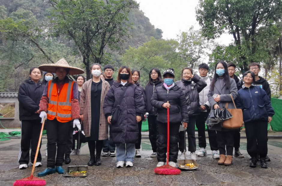 为强化学生干部的奉献意识和服务意识,12月13日,外贸与外语系分团委学生会在桂林市七星景区开展了“服务创城,美丽桂林”志愿服务活动,活动由2020级辅导员杨锦超带头,分团委学生会干部参与。
