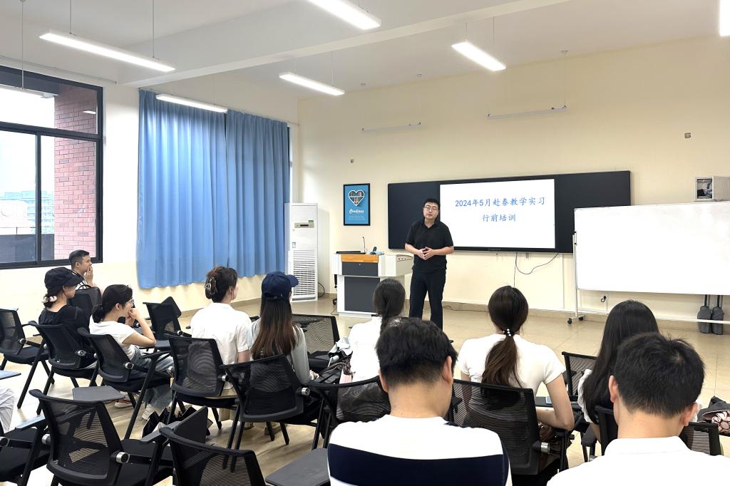 5月17日下午,外贸与外语学院在F213召开2024年赴泰国教学实习生行前教育培训会。会议由英语教研室副主任谢彩华主持,副院长赖安、学院党总支书记、副院长李刚、英语教研室主任王雪利等教师代表,以及此次赴泰国进行教学实习的学生参加。