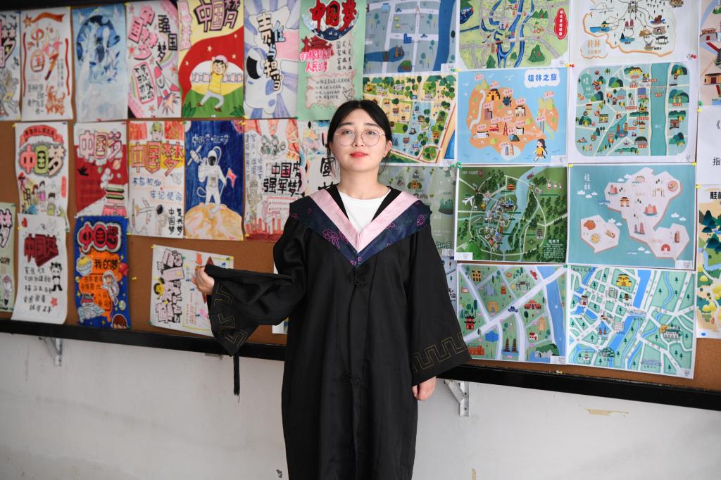 大四阶段,是一个学校与社会,学习与工作之间的连接点,从安逸舒心的环境即将进入到一现实的社会,陌生迷茫的未来让她有一段焦躁的时光。后来她调整好自己的心态和身体,适当地放松,与亲人和朋友交流,说出自己的困惑烦恼,让她想明白了考试有着标准答案,可是人生未来没有,一切都是需要自己去摸索,要自己去勇敢前行。凭借自己在设计系任职学生会主席和在系办任职系办助理的经验,她对高校辅导员这一岗位充满向往,她明确了自己要留校的目标,并以优异的成绩实现了这一梦想。“生命在律动,风景在行走,对于一个人来说,他的梦想就是他的翅膀!会努力飞翔到他想去的地方。”陈新雨在毕业之际,把一段寄语送给学院的老师和同学:“我要把心中最美好的祝福,献给我的母校、我的老师、我的同学和我的朋友!与你们的相识,是我人生最大的一笔财富!真诚的祝愿大家都有美好的前程和发展,也希望学弟学妹们能在学校好好学习,更上一层楼。”