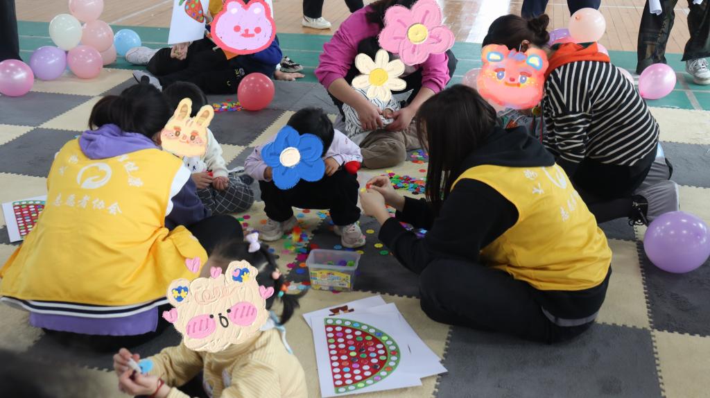 活动当天,志愿者们早早就来到现场为“星宝”们布置可爱的活动场所。活动开始后,志愿者们和儿童孤独症康复中心的老师们带着孩子们一起做了健身操,大家拍拍手、动动脚,把身体舒展开来。随后,家长和孩子一起进行了由志愿者们精心准备的互动游戏,过山洞、勇闯熊关、游戏消消乐、设计比赛、接力传球等一个个精彩的趣味游戏,让在场的每一个孩子都积极愉悦地参与到活动中来,丰富多彩的节目更是让现场一片欢声笑语。孩子们在游戏的过程中逐渐和大学生志愿者们热络起来,也让志愿者们对星宝们有了更多了解。