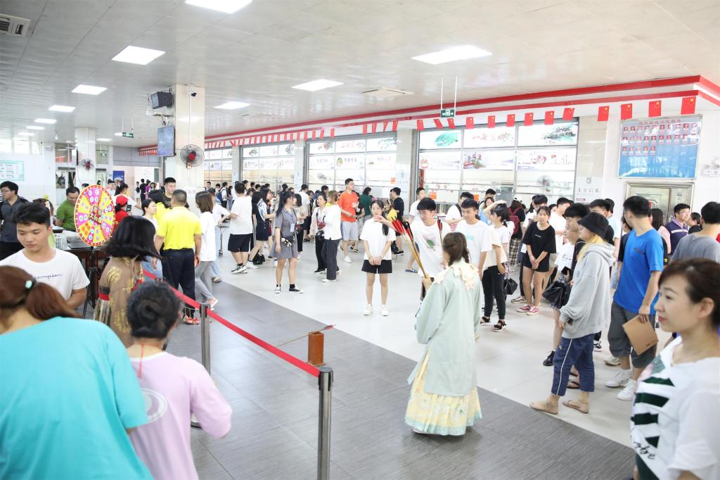 信科食堂将现代元素融入传统文化,通过寓教于乐的方式,搭建“服务育人”的活动平台,将活动分为“光盘有礼”、“传统投壶”、“体验包粽子”三个模块,师生凭就餐“光盘”或命中投壶,即可玩转幸运转盘一次,获得粽子、艾叶香囊、鸡蛋、鲜果等对应的礼品。汉服社团的同学们身着汉服为活动现场助兴,吸引不少师生驻足参与,活动现场热闹欢快。
