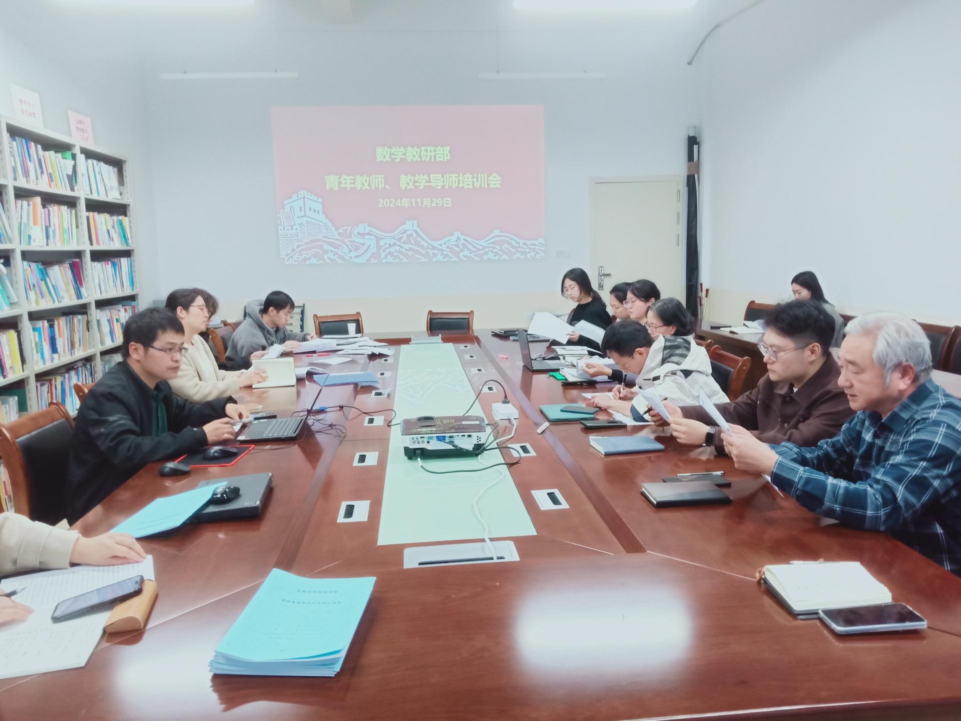 2024年11月29日下午,数学教研部在F525举行了教学导师见面会暨青年教师、教学导师培训会。会议由数学教研部主任助理汪敏庆老师主持,部门全体新入职青年教师及其教学导师参加,教务处王欣乐老师与人事处马慧芳老师也应邀出席,为会议提供指导支持。