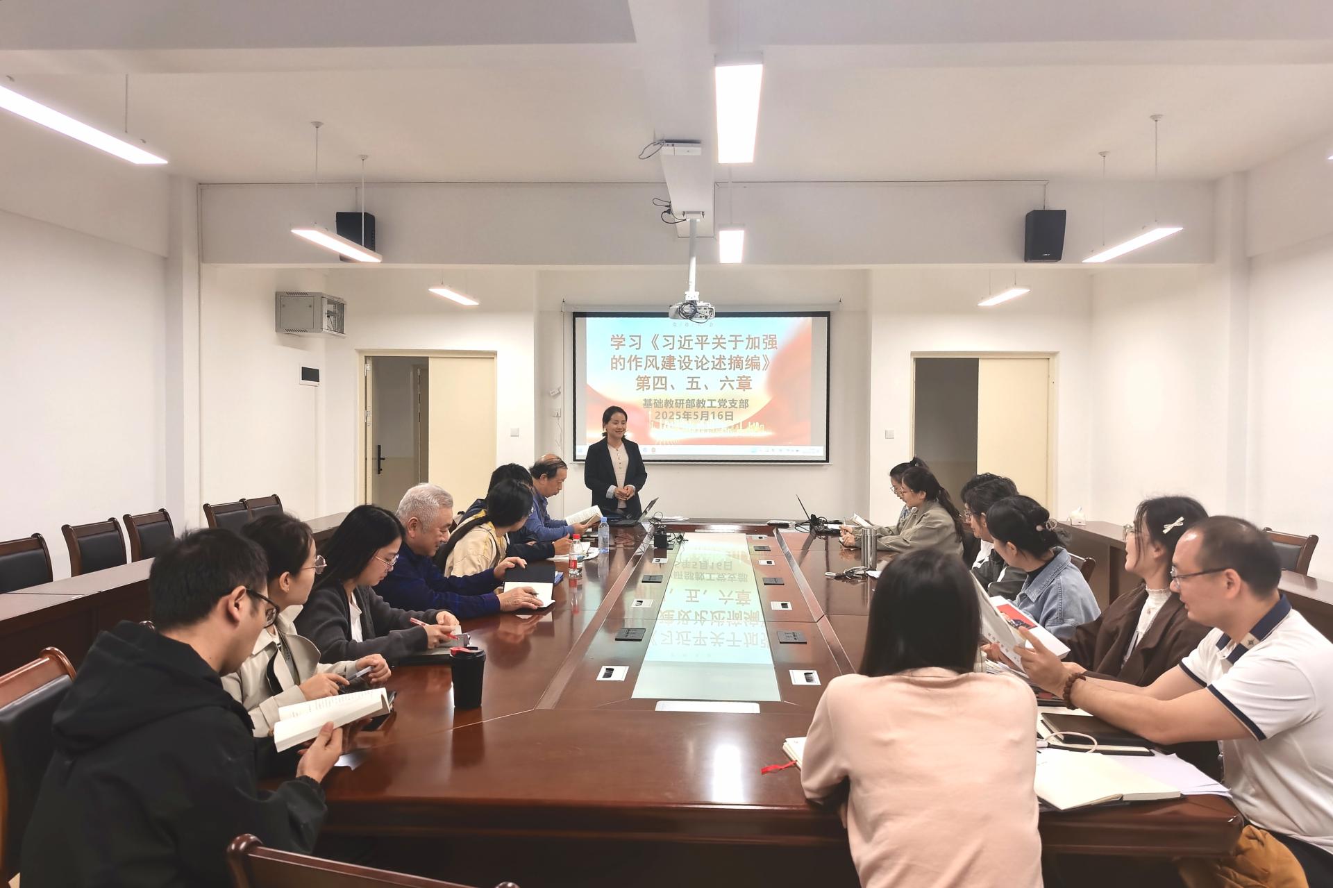 基础教研部教工党支部开展《习近平关于加强党的作风建设论述摘编》第四、五、六章专题学习会