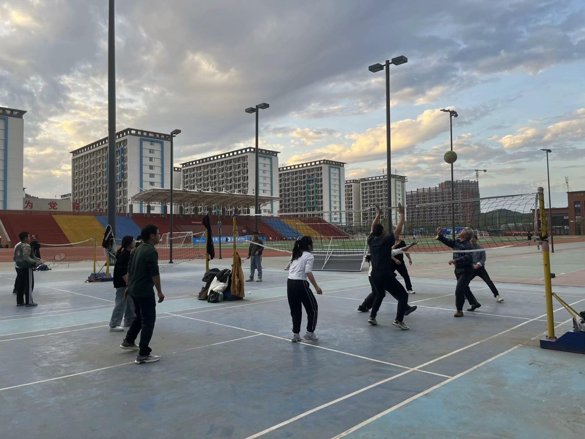 本年此活动由数学教工党支部书记刘映伶和副书记韦爱举组织,队长张国新老师号召,共15名教职员工参加,球场上,老师们活力四射,欢声笑语,每一次发球、接球、扣球都凝聚着团队的智慧与默契。尽管并非专业运动员,但大家凭借坚定的毅力和不服输的劲头,在球场上奔跑跳跃,尽情挥洒汗水。