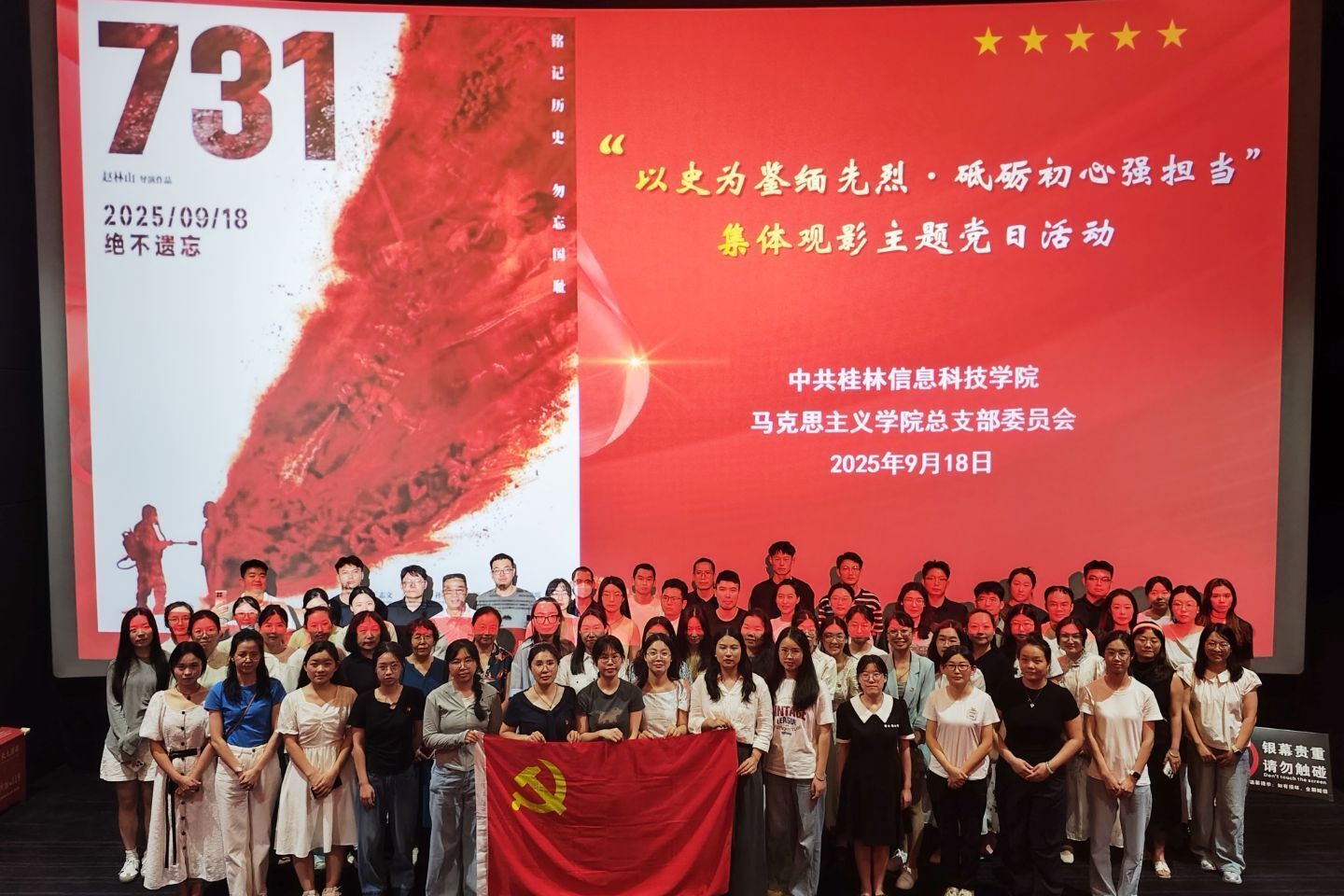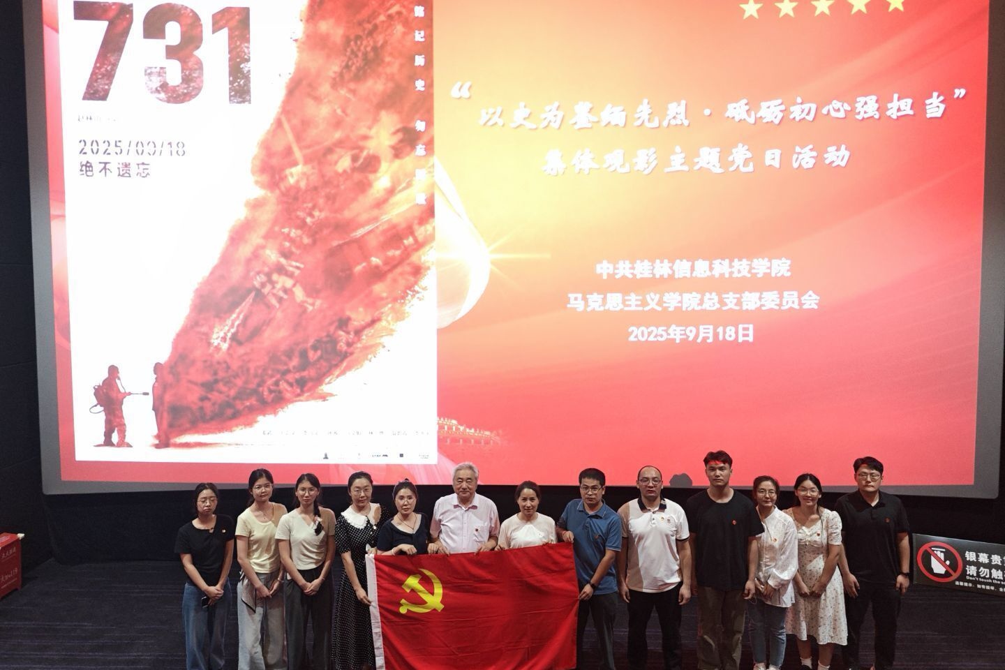 为创新党日活动载体,深化爱国主义教育,厚植党员历史使命感,9月18日晚,基础教研部教工党支部联合马克思主义学院党总支,组织全体党员赴桂林临桂万达影城开展“以史为鉴缅先烈 砥砺初心强担当”主题党日活动,集中观看历史题材影片《731》。