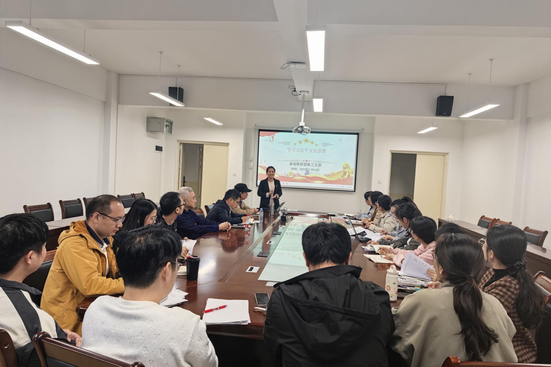 为深入学习贯彻习近平文化思想,切实担负起文化育人的时代使命,11月14日下午,基础教研部教工党支部在汇通楼H504会议室召开专题学习会,集中学习习近平文化思想的丰富内涵与核心要义。会议由基础教研部教工党支部书记刘映伶主持,支部全体党员参会。