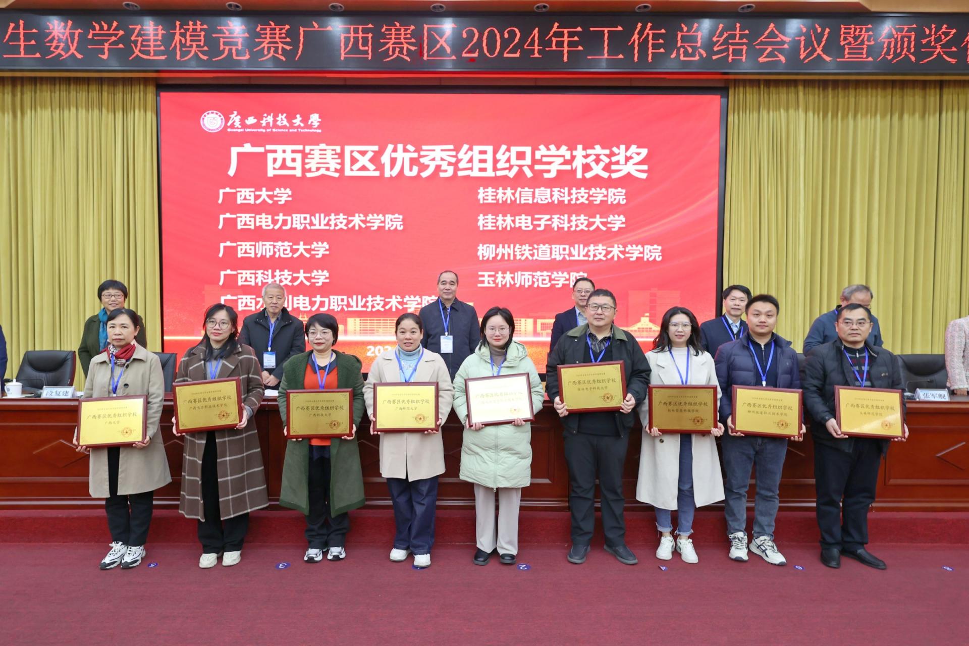 12月14日,由广西数学学会、全国大学生数学建模竞赛广西赛区组委会举办的全国大学生数学建模竞赛广西赛区2024年工作总结会议暨颁奖仪式在广西科技大学举行。sjb世俱杯学生队伍凭借出色的团队合作和扎实的数学功底,荣获国家二等奖2项,区级一等奖1项,区级二等奖7项,区级三等奖8项,广西赛区“优秀指导老师”1名,广西赛区“优秀组织院校”的好成绩。