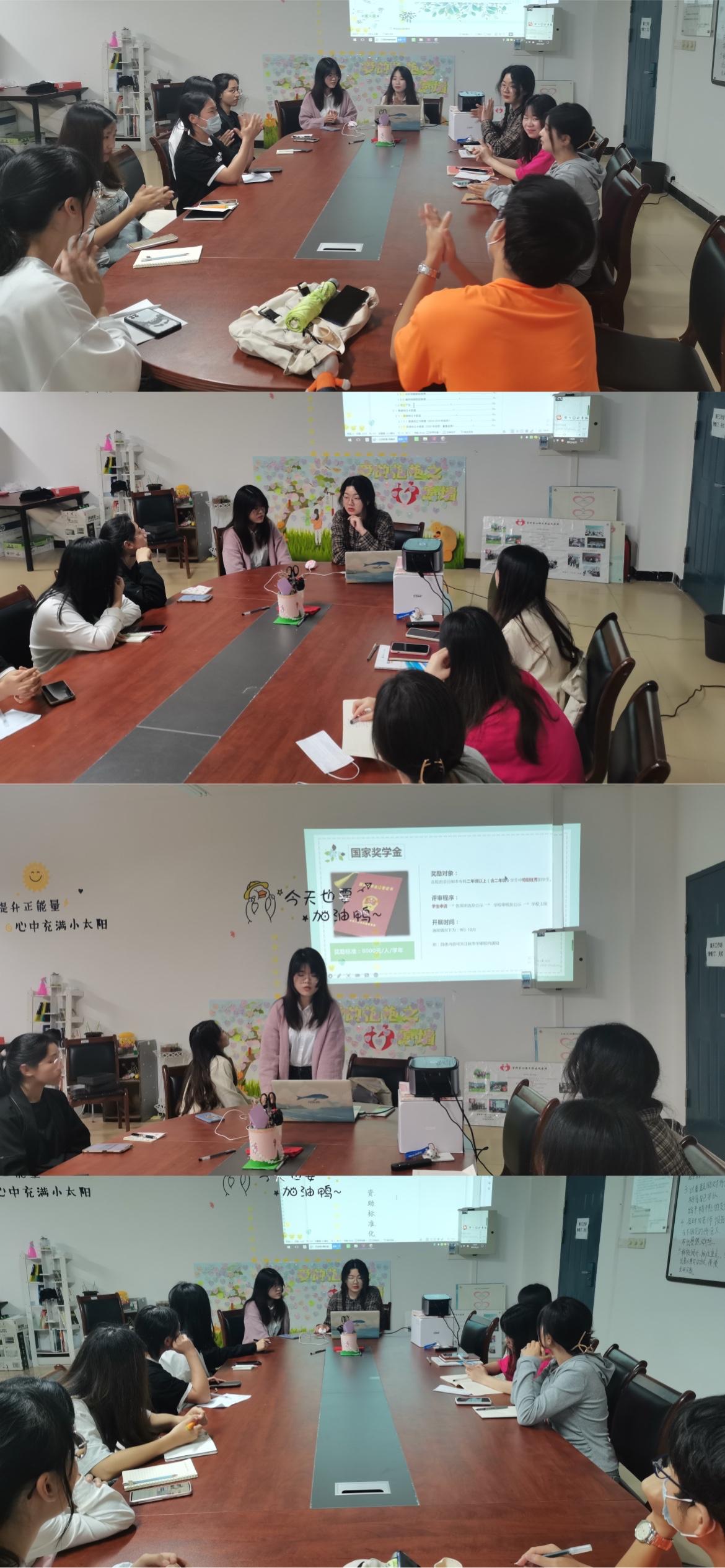 2.设有资助宣讲员,主要负责对“三奖一助”的申请、审批、发放流程的宣讲,定期对各年级资助委员进行资助工作培训,负责资助工作站新闻撰写、图片、视频的拍摄及处理工作;