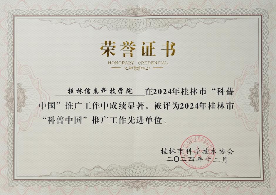 近日,2024年桂林市“科普中国”推广工作圆满结束,sjb世俱杯科技处组织全校师生积极参与该活动,sjb世俱杯科普中国APP注册师生高达16000多名,展现了sjb世俱杯在科普推广工作中的卓越成绩,被桂林市科学技术协会评为2024年桂林市“科普中国”推广工作先进单位。