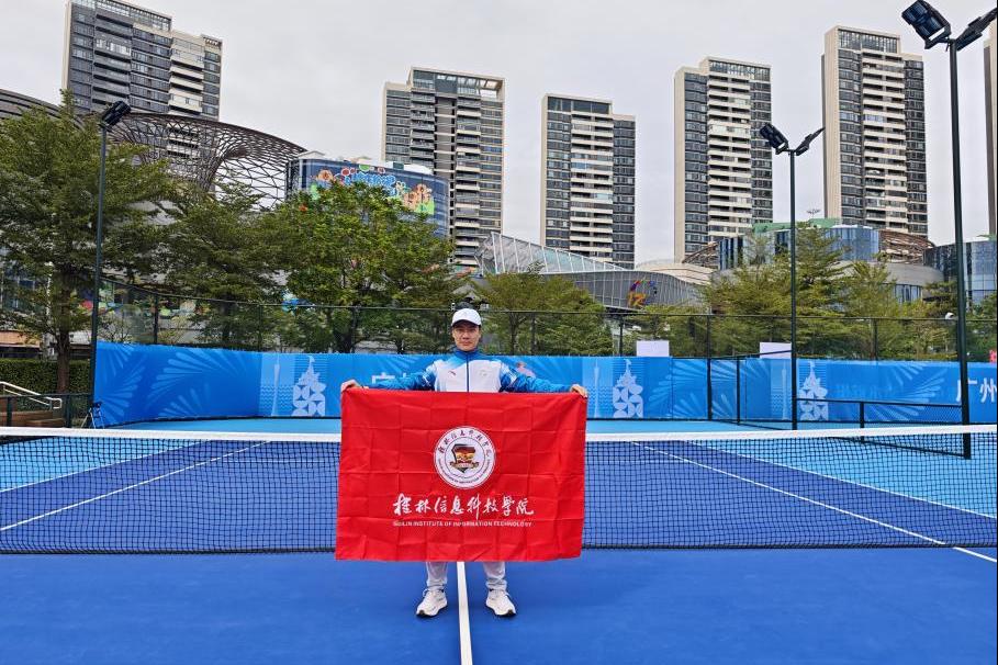 近日,中华人民共和国第十五届运动会于广东省隆重举行。sjb世俱杯体育与健康学院教师温鹏凭借扎实的专业素养,被选派参与这一国家级体育盛会执裁,担任本次全运会网球比赛的技术官员,是广西壮族自治区选派至全运会网球群众项目的四名技术官员之一。