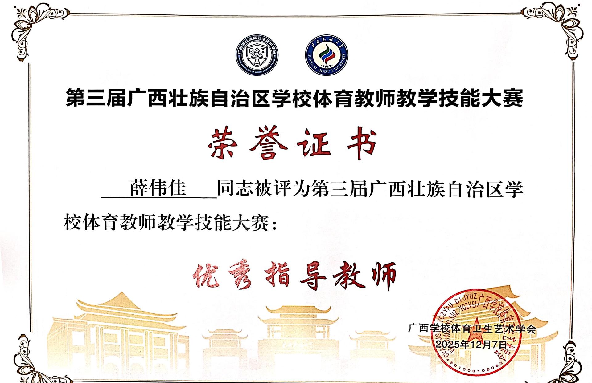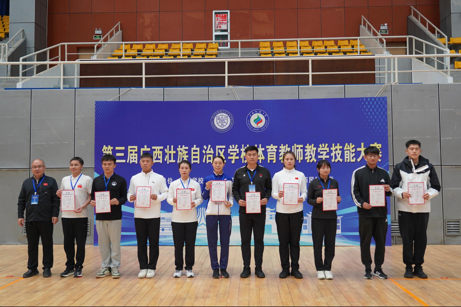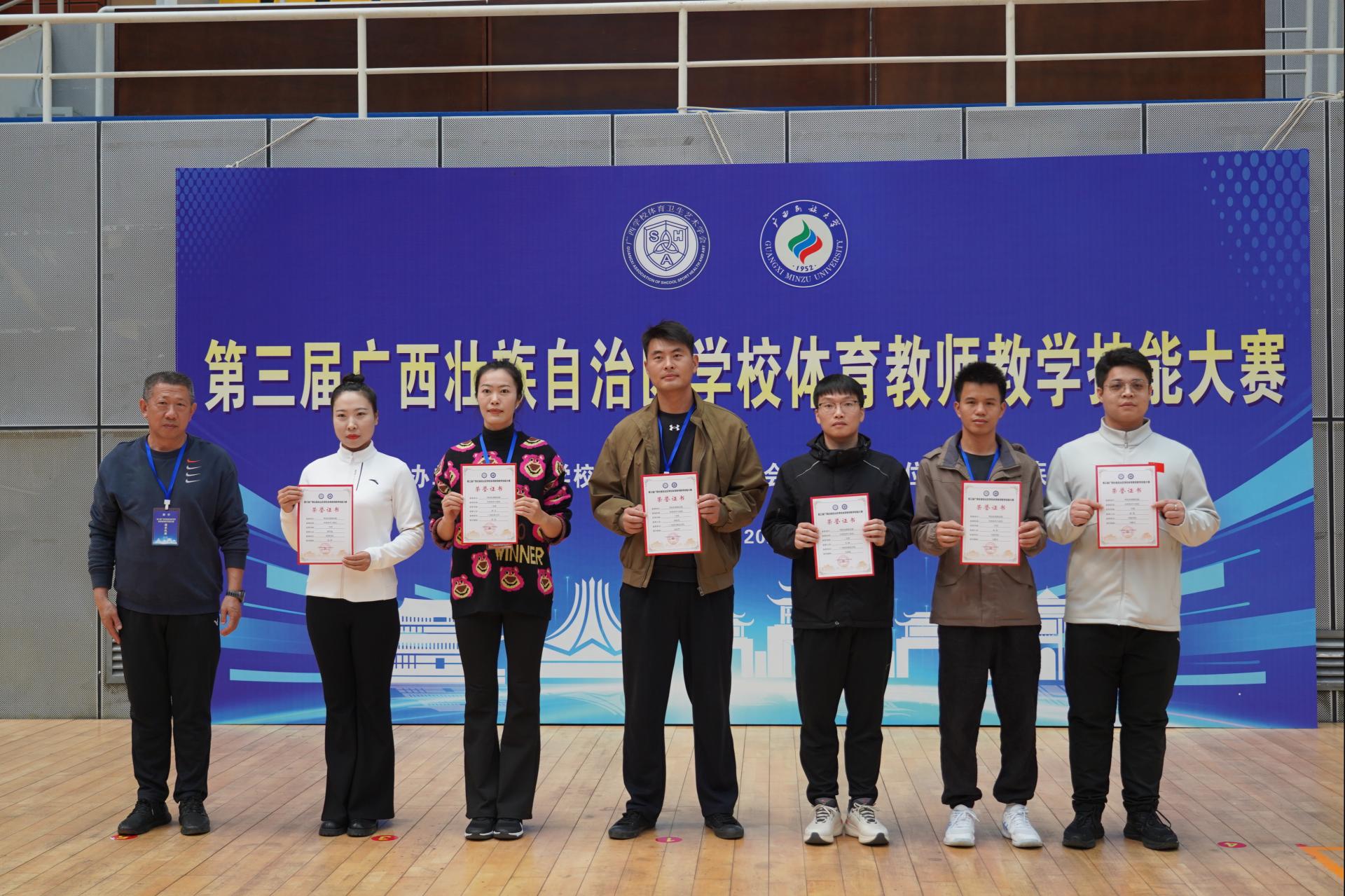 12月5日至7日,由广西学校体育卫生艺术学会主办,广西民族大学承办的第三届广西壮族自治区学校体育教师教学技能大赛在广西民族大学思源湖校区圆满收官。sjb世俱杯体育与健康学院王蕊、李炜、聂新和三位老师参加此次比赛。