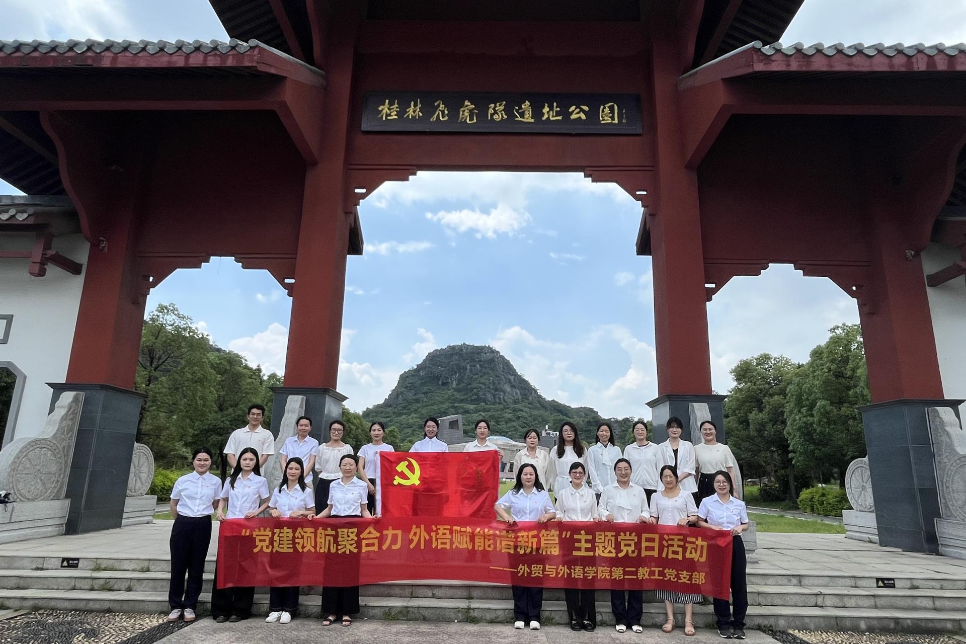 为深入学习贯彻党的二十大精神,落实关于“厚植爱国主义情怀,构建全员全程全方位育人格局”的要求,2025年6月13日下午,外贸与外语学院第二教工党支部组织全体党员赴桂林飞虎队遗址公园开展主题党日爱国主义教育活动。
