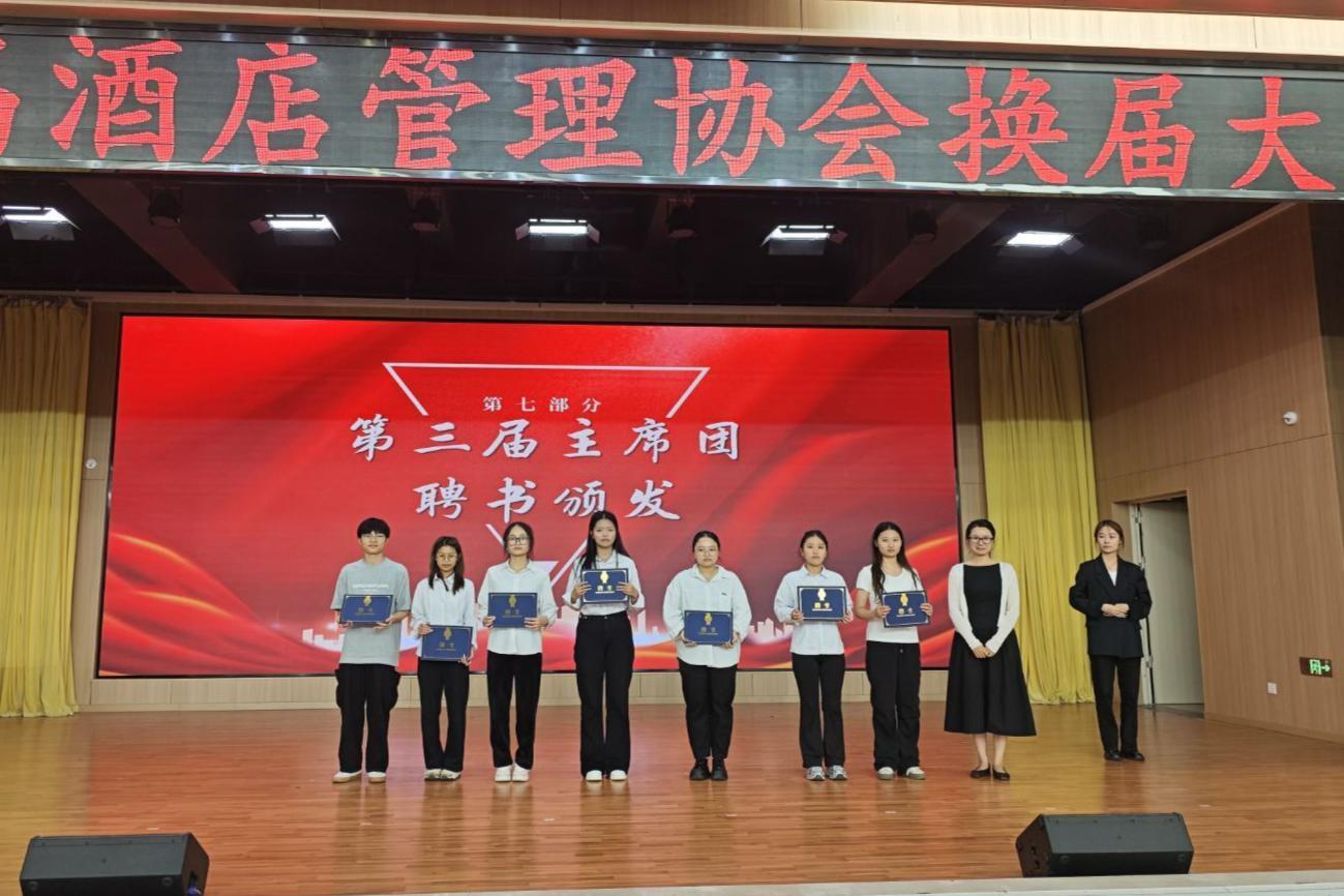 酒店管理协会第三届换届大会于2025年06月18日晚在F107报告厅隆重举行。本次大会总结了协会过去一年的工作成果,并选举产生了新一届协会骨干成员,为协会未来发展注入了新的活力。