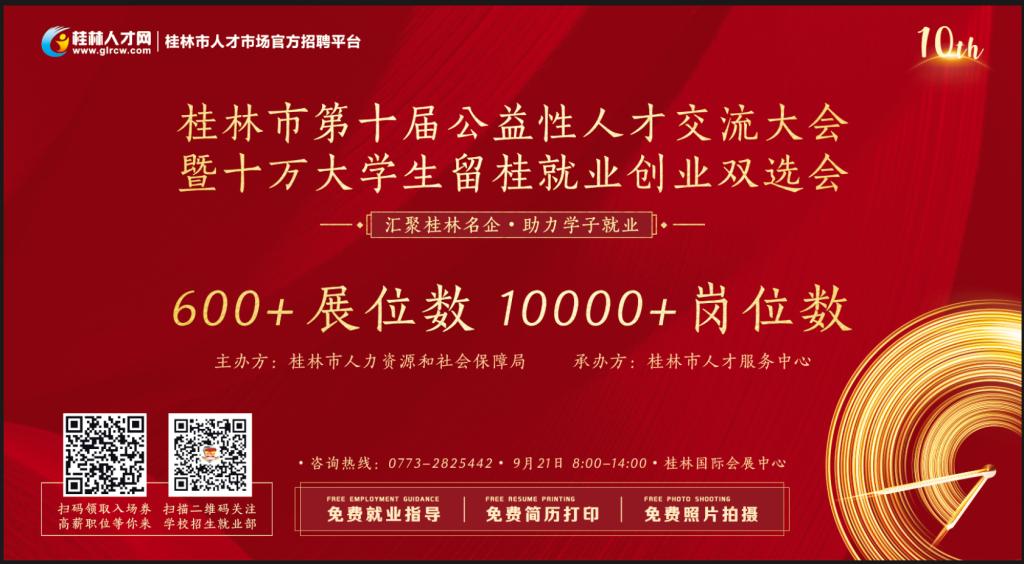 桂林市第十届公益性人才交流大会暨十万大学生留桂就业创业双选会: