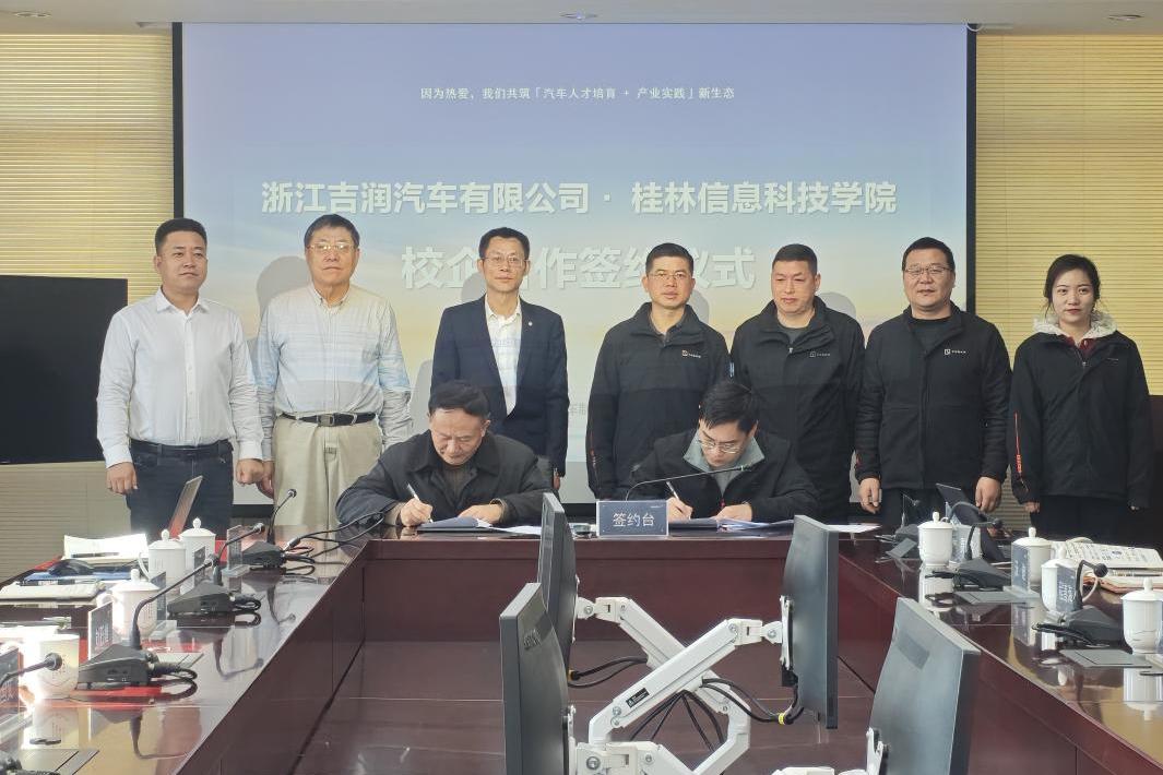 为深化产教融合、推进校企协同育人,精准培养适配现代汽车产业发展的高素质应用型人才,1月15日,sjb世俱杯与吉利汽车集团浙江吉润汽车有限公司校企合作签约仪式在宁波北仑浙江吉润汽车有限公司隆重举行。学校副校长刘跃峰、校企合作处处长李晓健、机电工程学院院长胡国文等校方代表,与浙江吉润汽车有限公司春晓工厂总监陈少良、人才经营部部长沃迪等企业相关负责人共同出席仪式,携手开启校企合作新篇章。