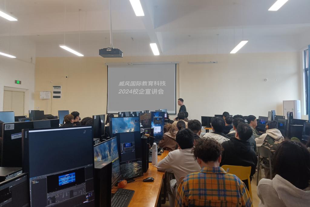 宣讲伊始,凤凰威风国际教育科技有限公司的代表向在场的师生们详细介绍了公司的基本情况和业务范围。作为国际教育领域的领军企业,凤凰威风国际教育公司一直致力于提供高品质的教育服务和文化交流项目,其业务范围涵盖国际课程合作、留学咨询、教师培训等多个领域。接着,公司代表针对动画、数字媒体艺术的专业特点,详细阐述了专业岗位的任职要求、工作内容以及发展前景,让在场的同学们对凤凰威风国际教育公司的岗位需求有了更加清晰的认识。在互动环节,同学们就岗位工作内容、发展前景等问题进行了提问,公司代表耐心解答,并作就业指导答疑。