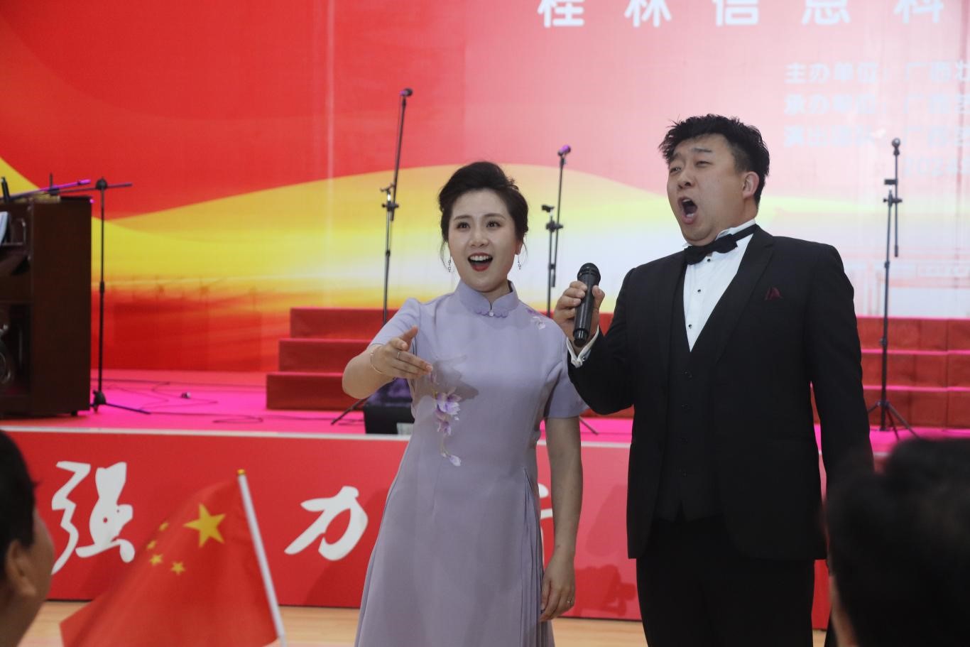 本次活动的节目精彩纷呈,由广西艺术学院合唱团精心准备并进行演出。共演唱了19首广受人民喜爱的作品,《大地飞歌》《壮族敬酒歌》《山里山外》……一段段悠扬的旋律,一首首脍炙人口的经典名作,让观众们身临其境,沉溺在美妙的音乐世界中。在教师独唱节目中,仵威、黄金老师与台下师生进行互动,为本次活动增添许多乐趣。